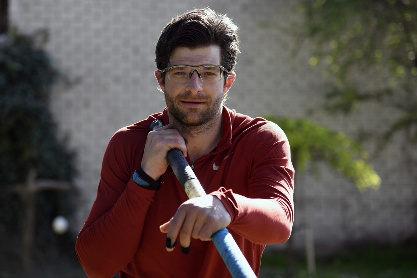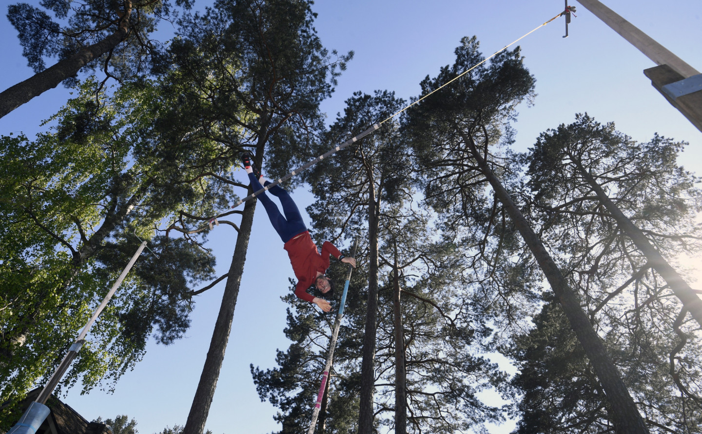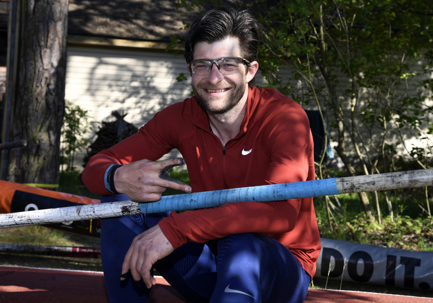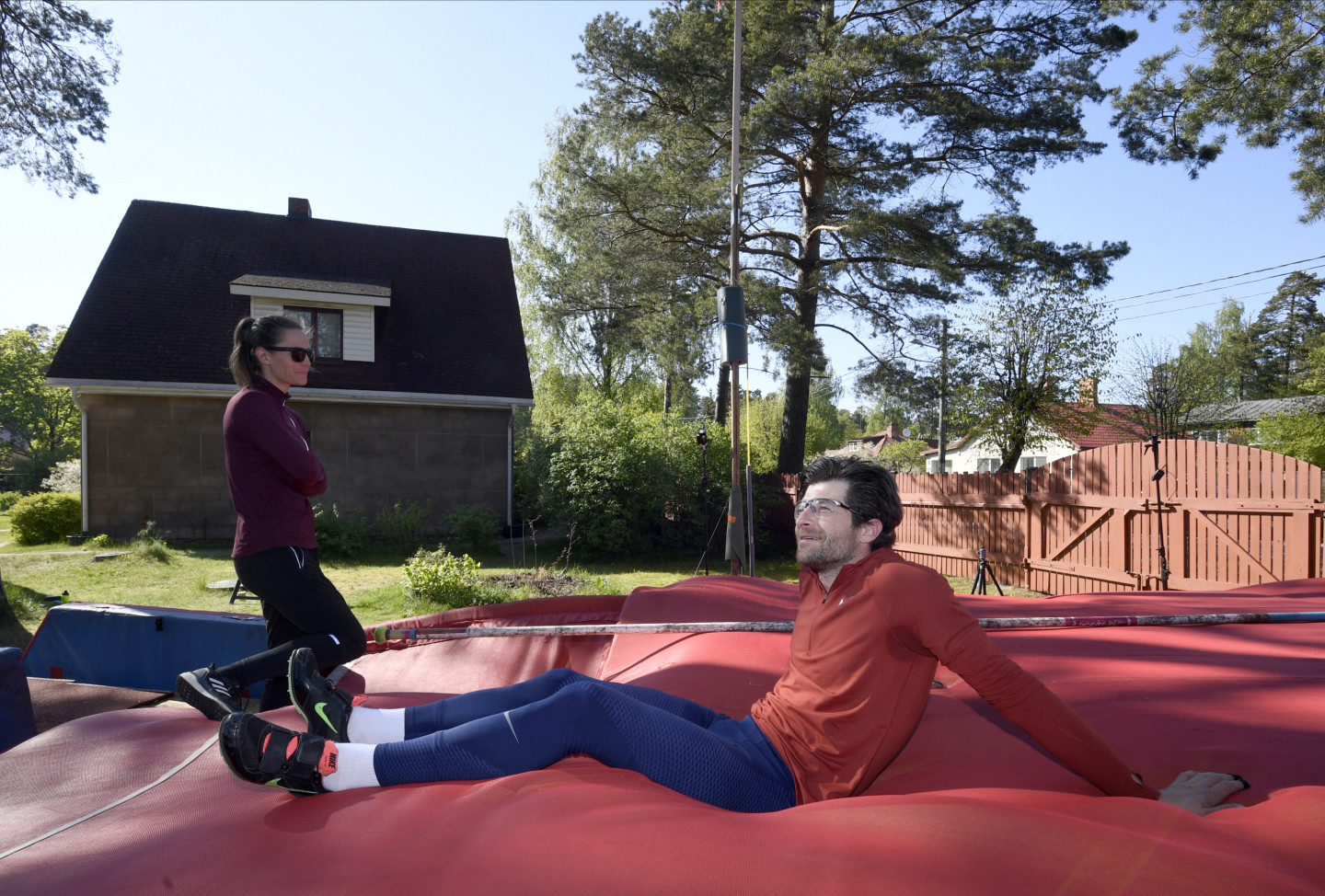 Kārtslēcējs Mareks Ārents Covid-19 pandēmijas laikā trenejas savas mājas pagalmā Saulkrastos.