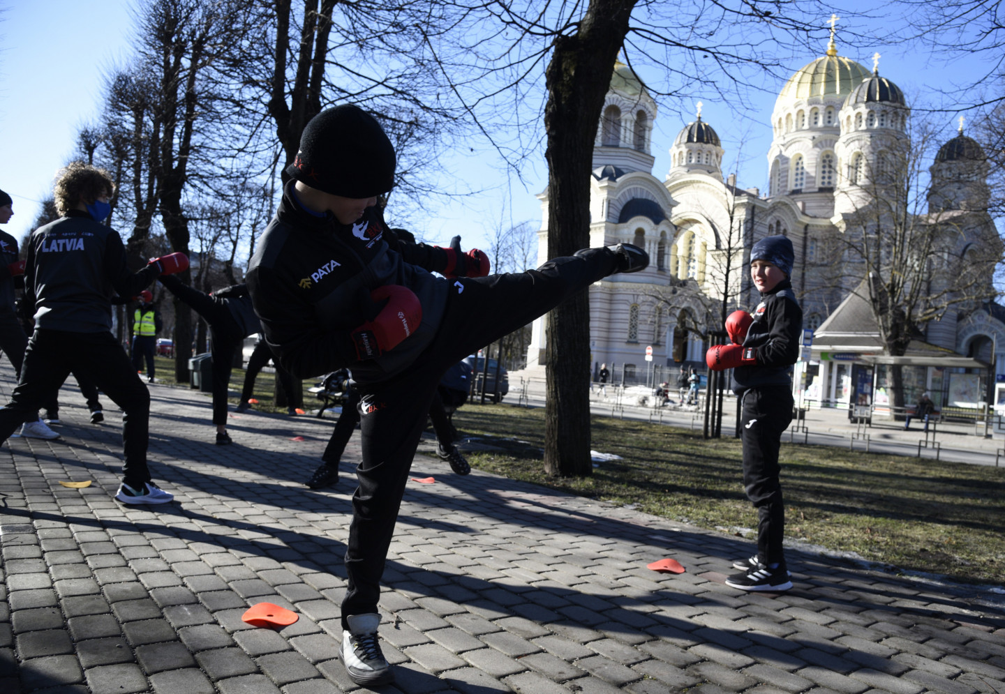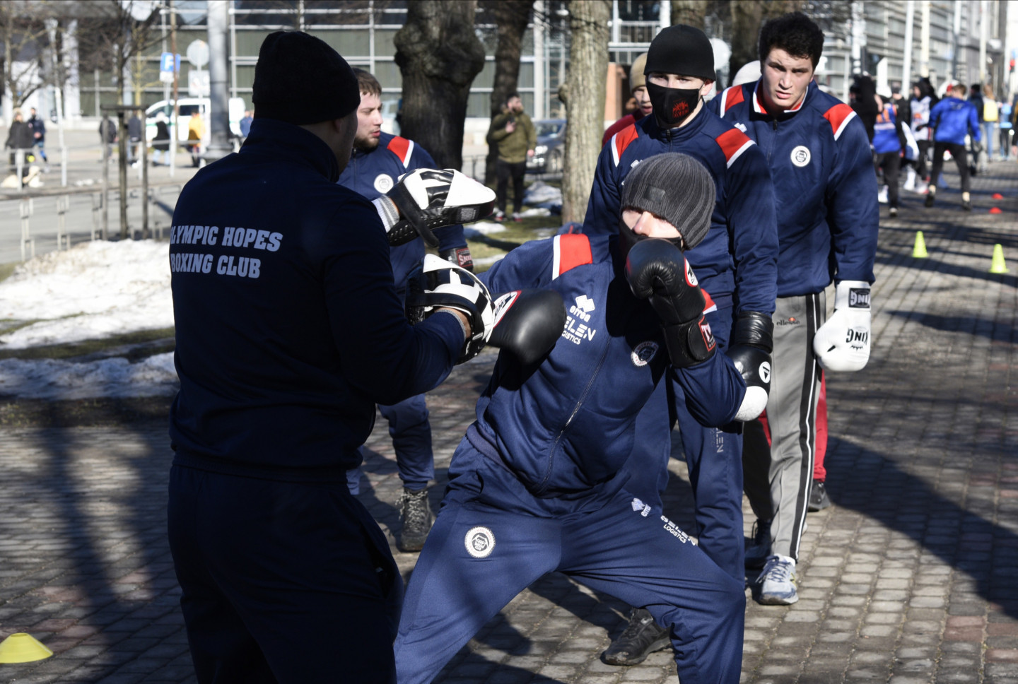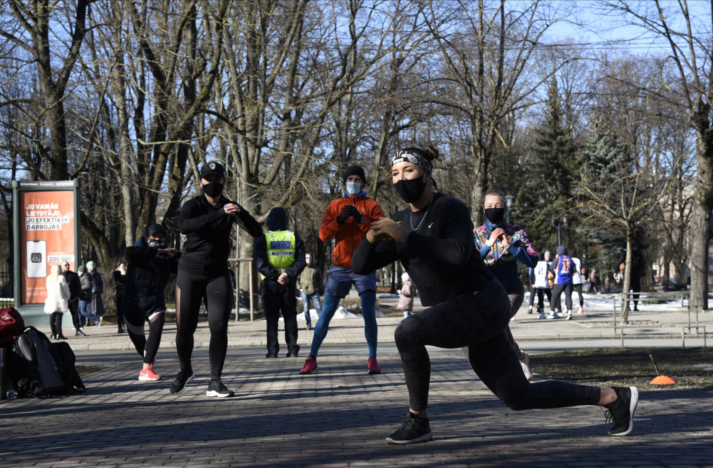 Šodien pie valdības ēkas uz atvērto treniņu sanāca apmēram simts sportistu, lai aicinātu Ministru kabinetu domāt, kā sportistiem trenēties Covid-19 laikā.