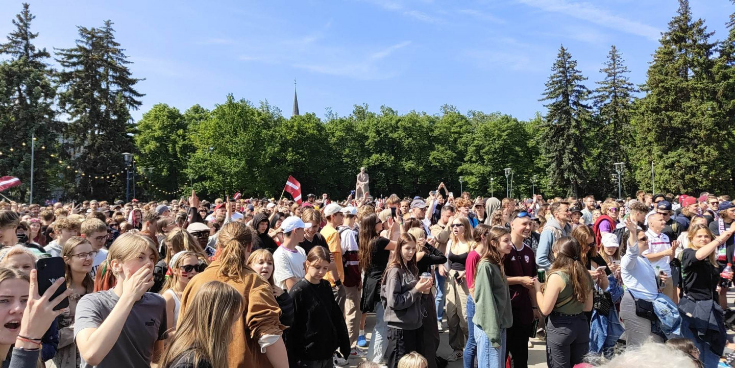 Rīgā uz kopīgu hokeja skatīšanos pulcējas tūkstoši