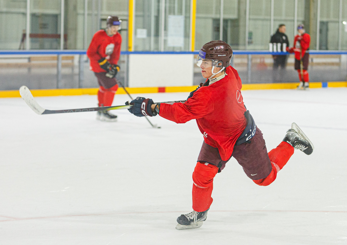 "Daugavas" stadiona ledus hallē Latvijas U-20 hokeja valstsvienība aizvadija pēdējo treniņu pirms došanās uz Pasaules čempionātu Otavā, Kanādā.