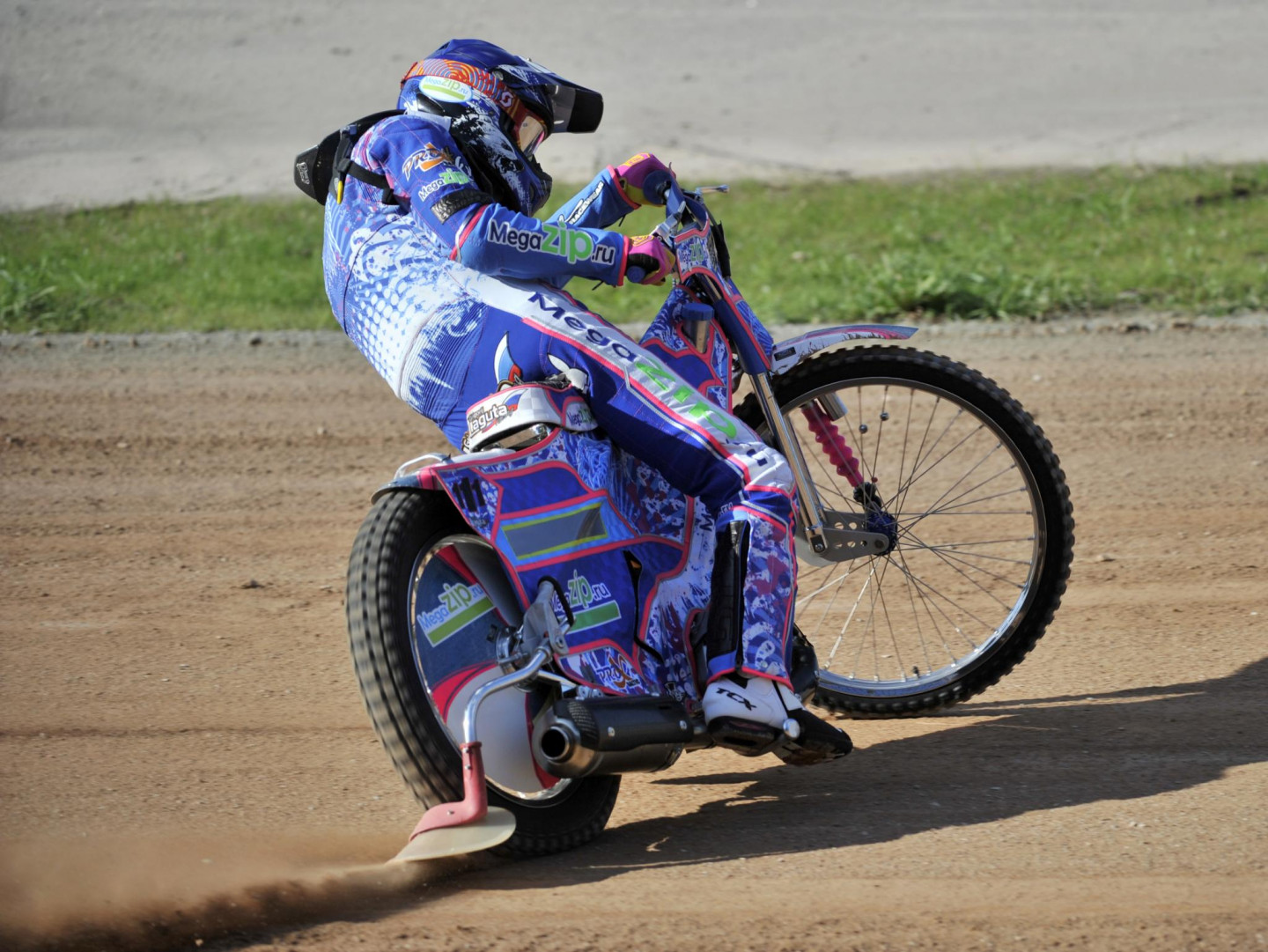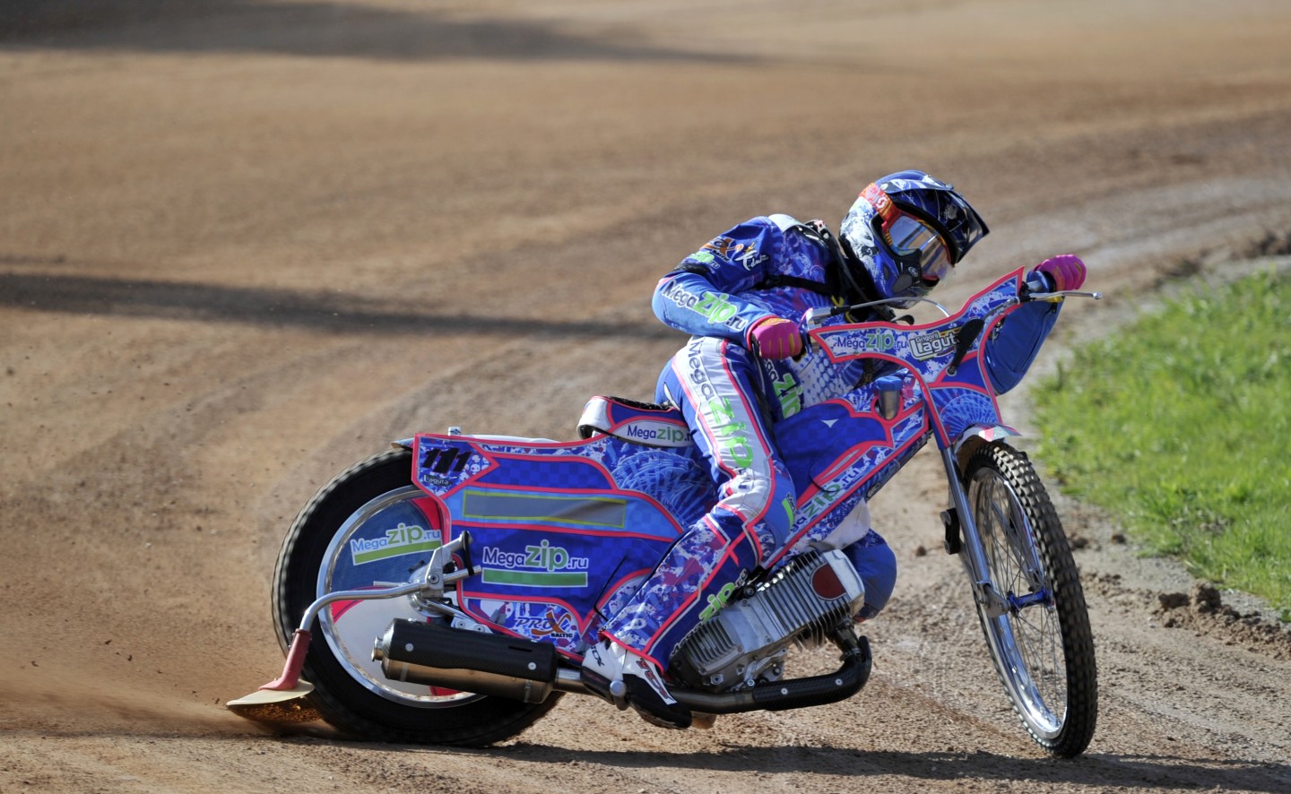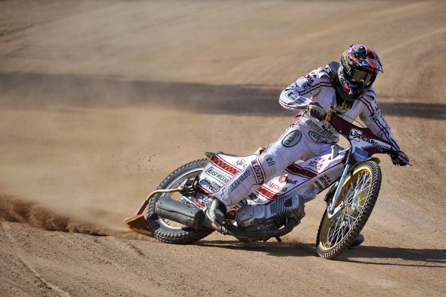 Grigorijs Laguta spīdveja atklātā treniņa laikā Biķernieku trasē