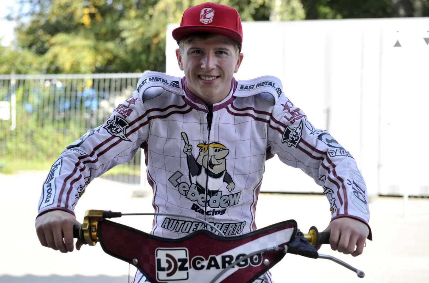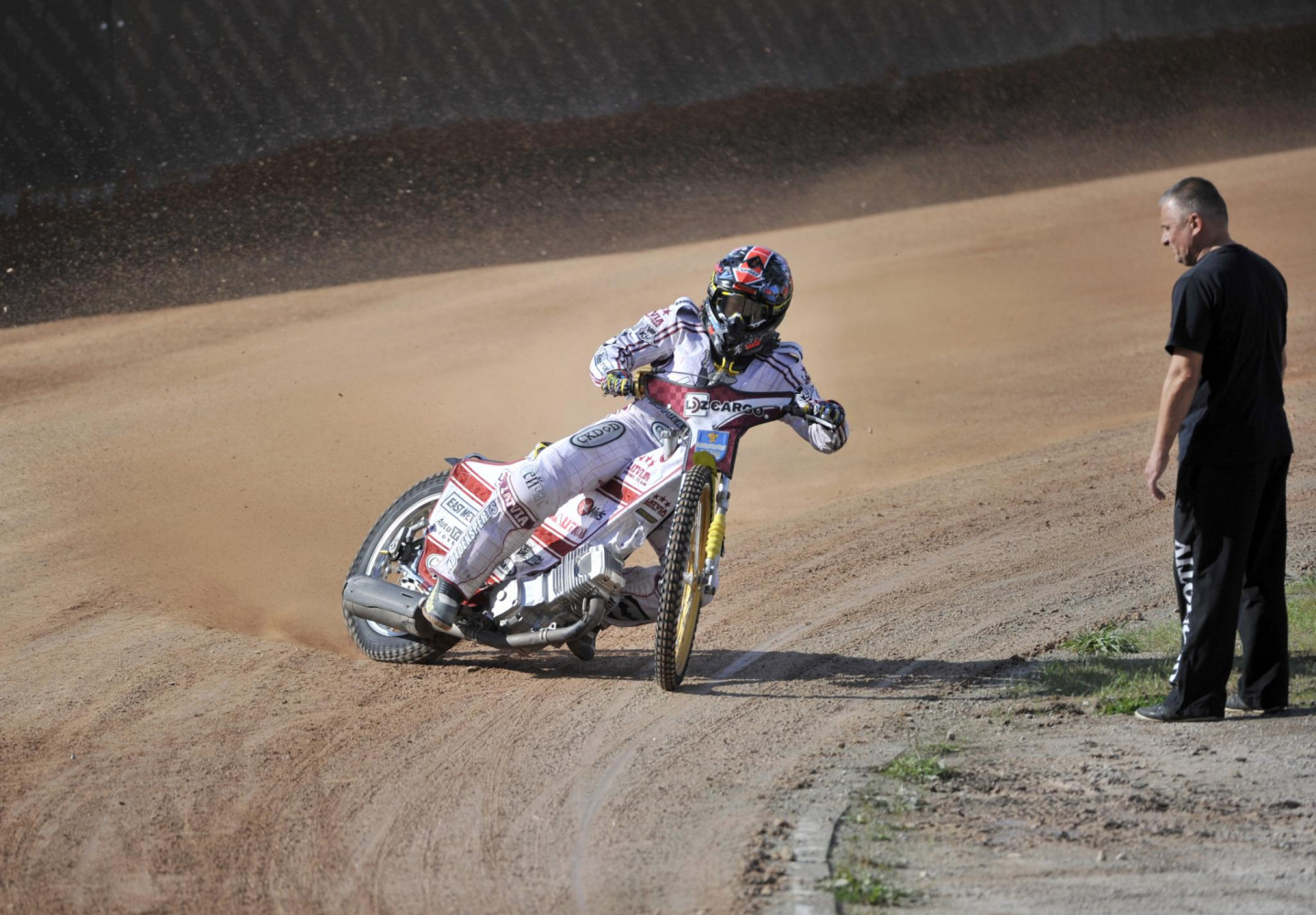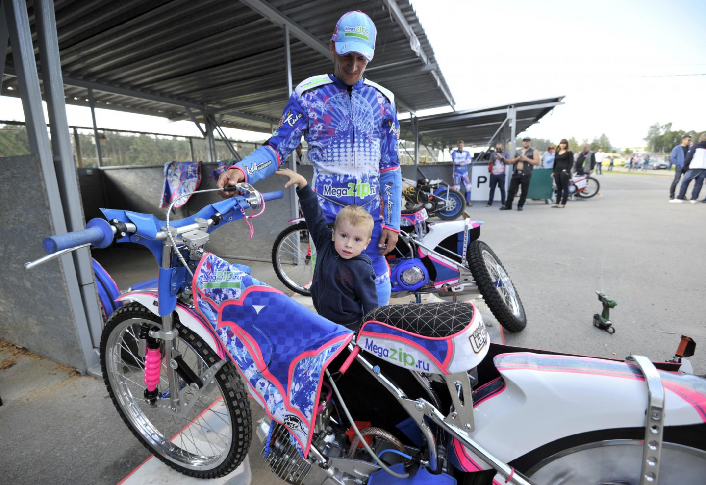 Grigorijs Laguta spīdveja atklātā treniņa laikā Biķernieku trasē