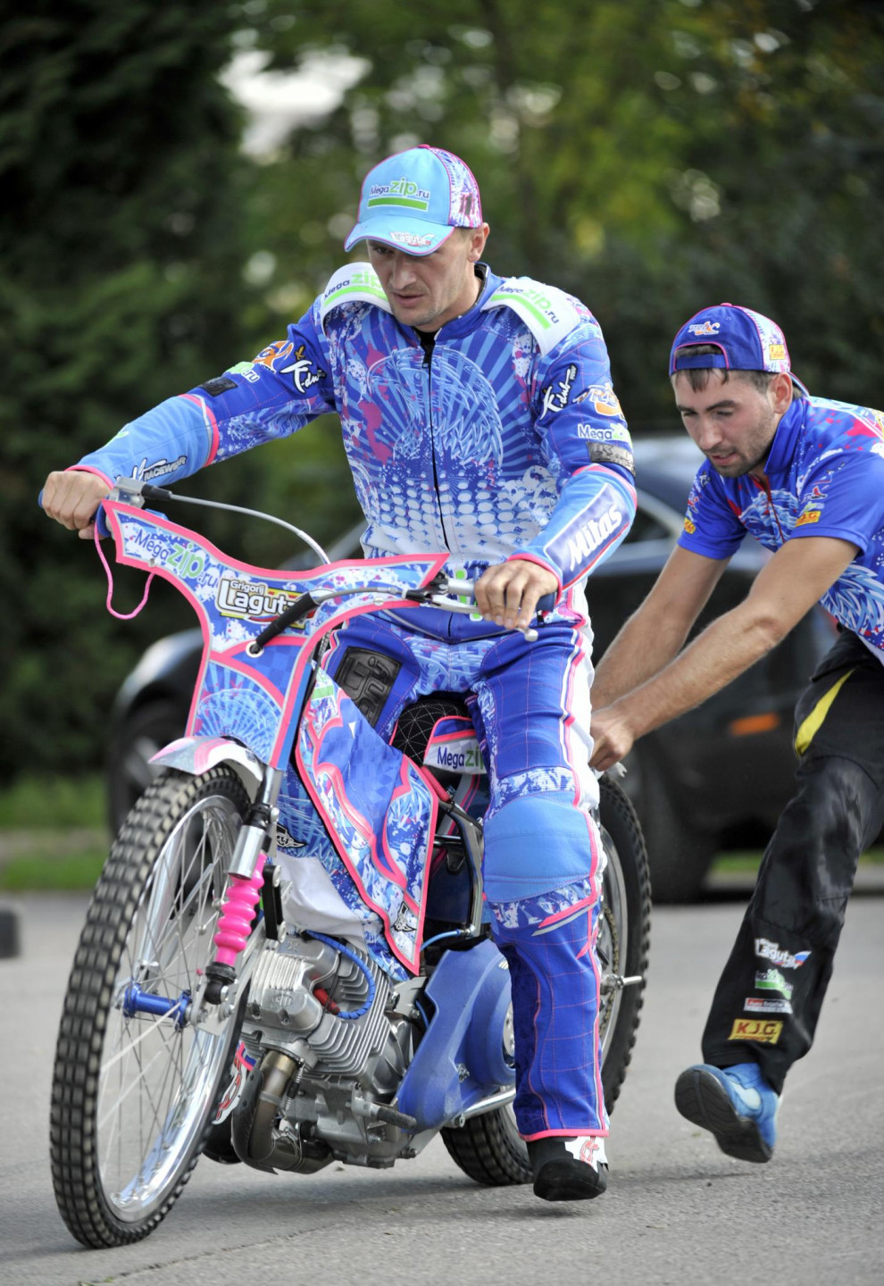 Spīdvejists Laguta iemēģina Biķernieku trasi