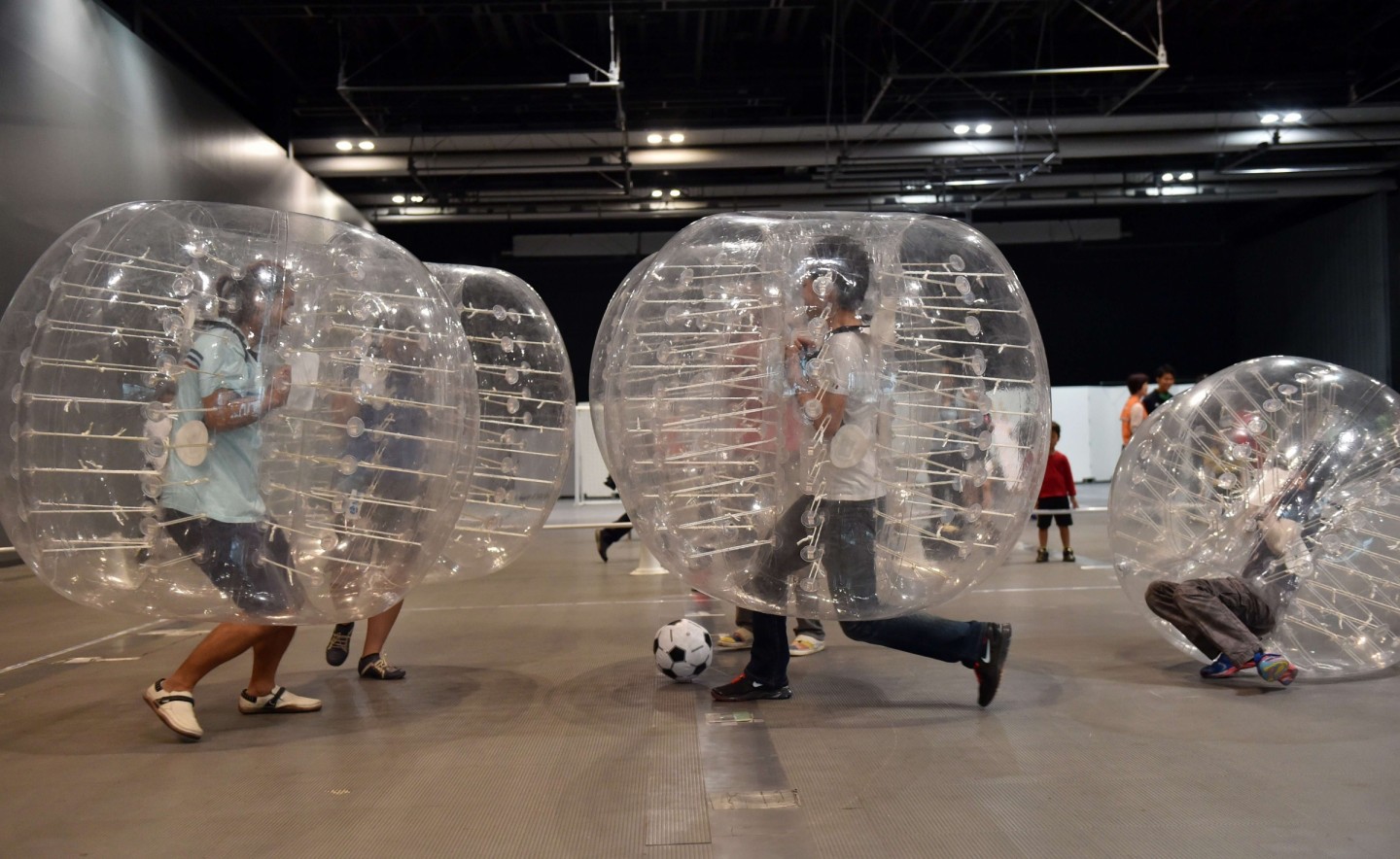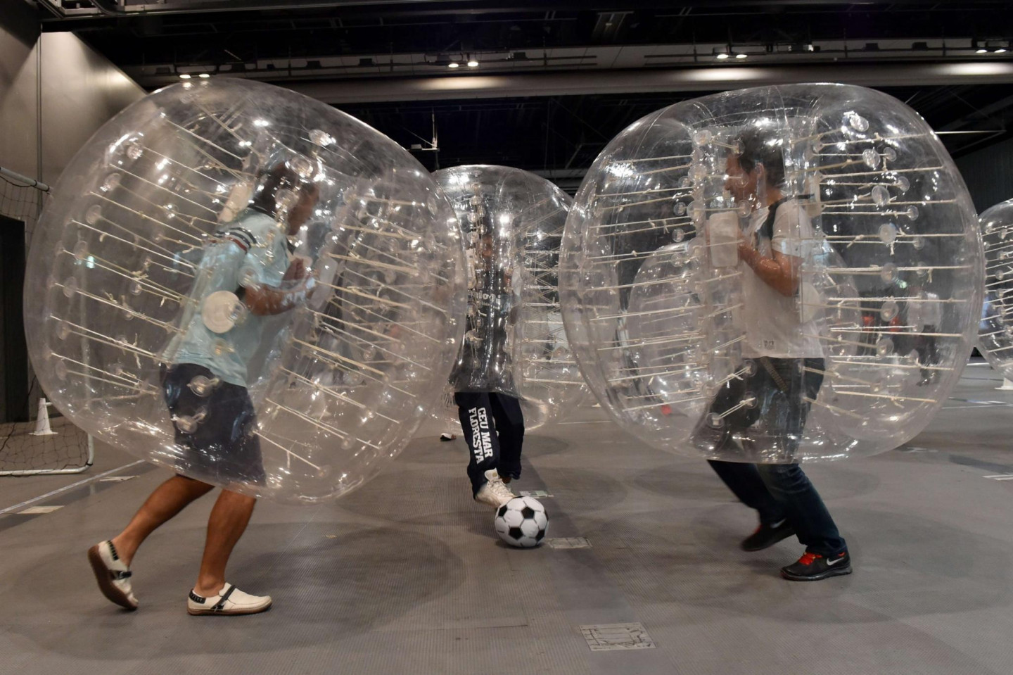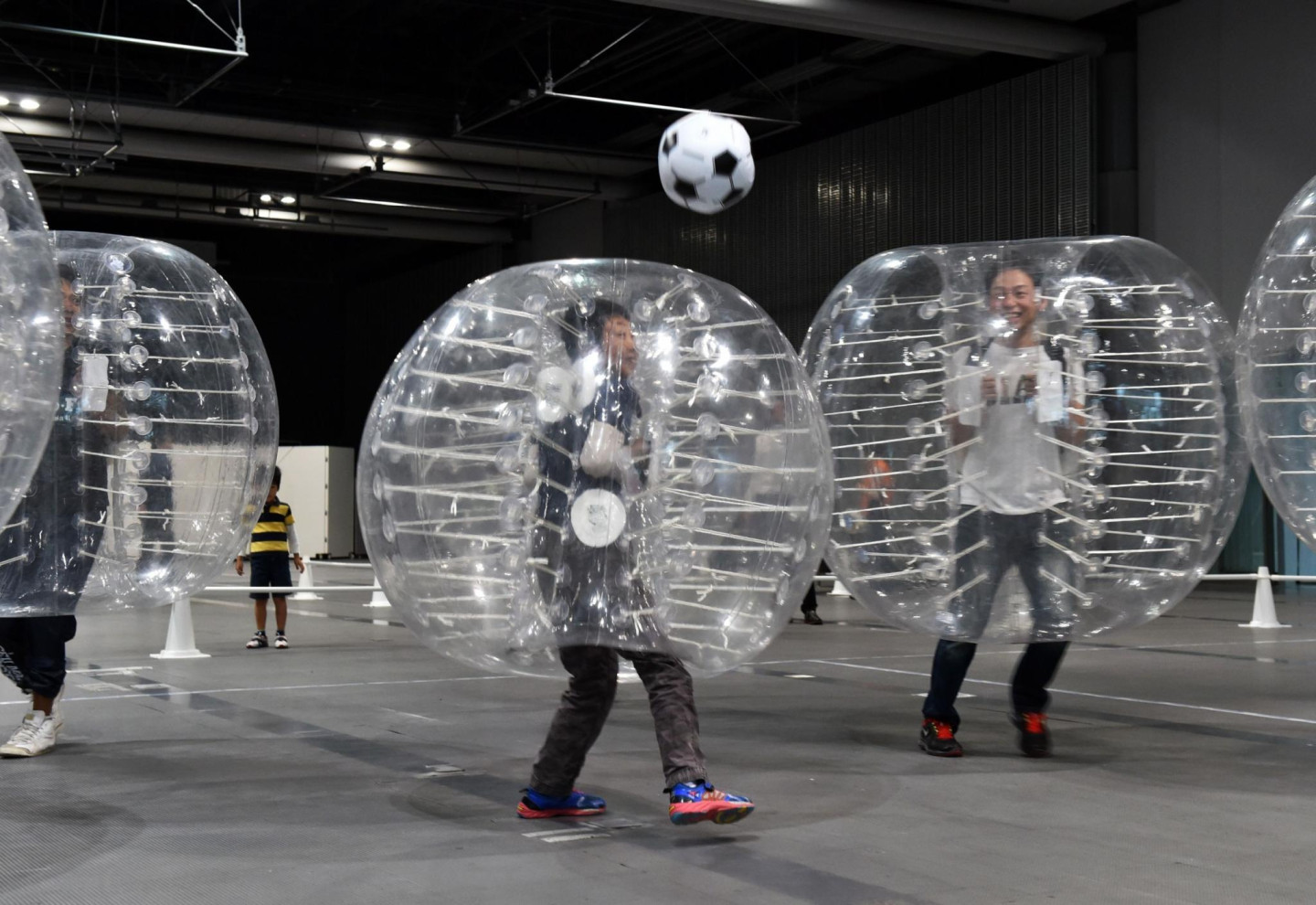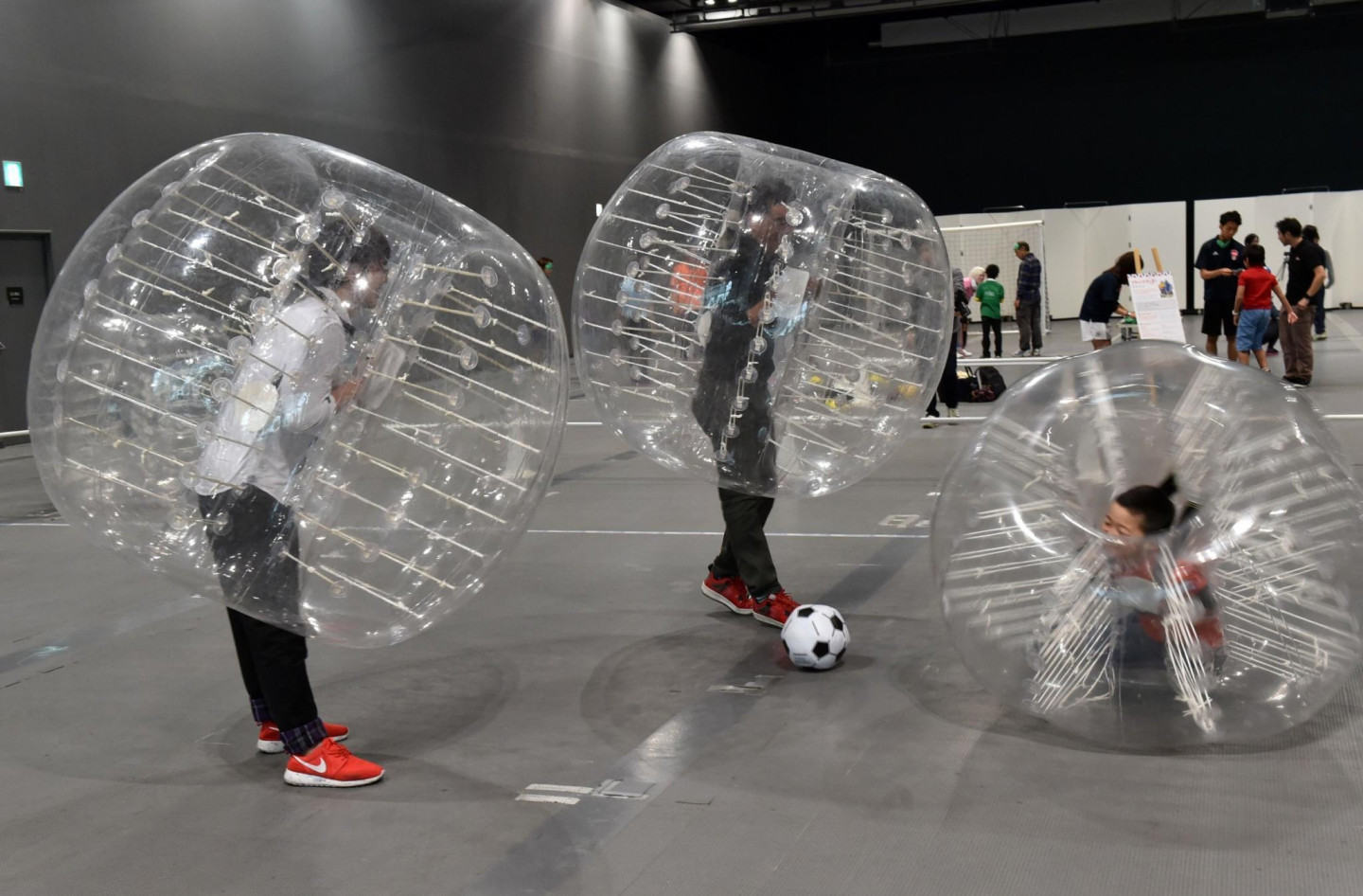 Tokijas Nacionālajā zinātnes un inovācijas muzejā apmeklētājiem iespējams izbaudīt savdabīgu futbola spēli.