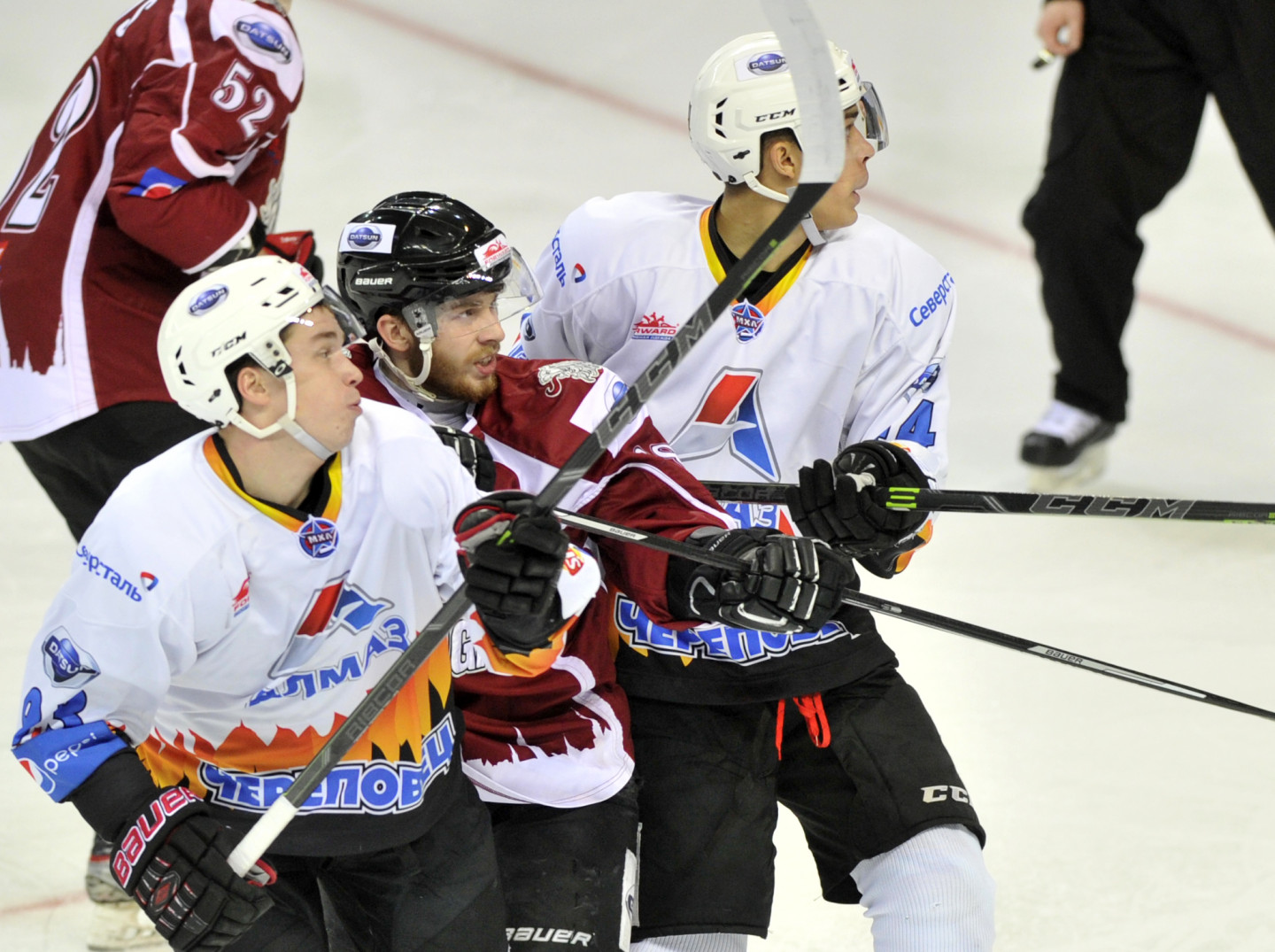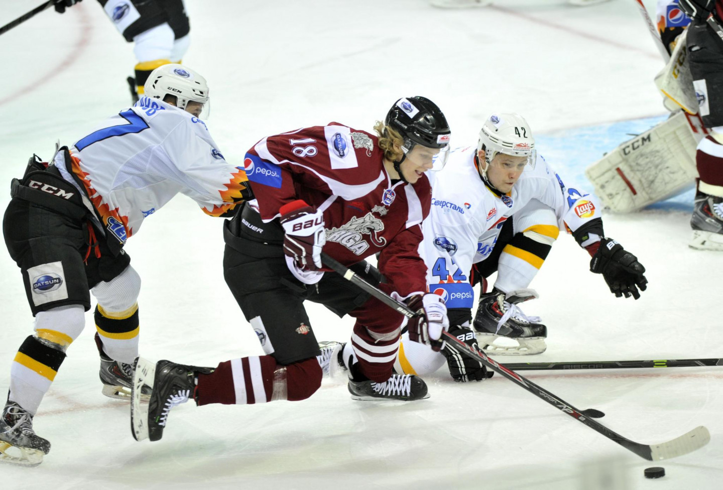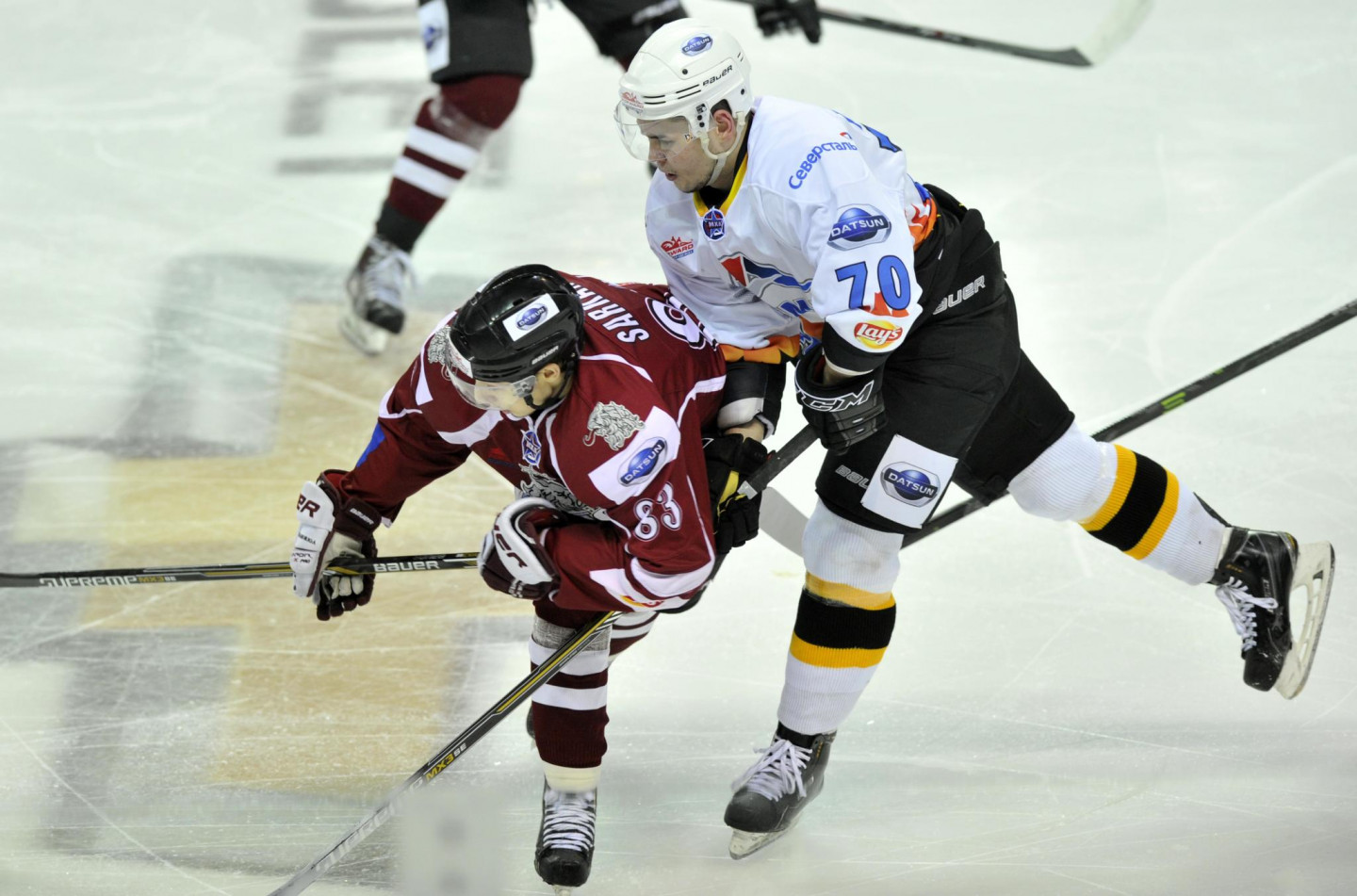 Zaudējumu Krievijas Jaunatnes hokeja līgas izslēgšanas spēļu pirmajā mačā piedzīvoja hokeja klubs "Rīga", kas savā laukumā ar 3:6 atzina Čerepovecas "Almaz" pārākumu.