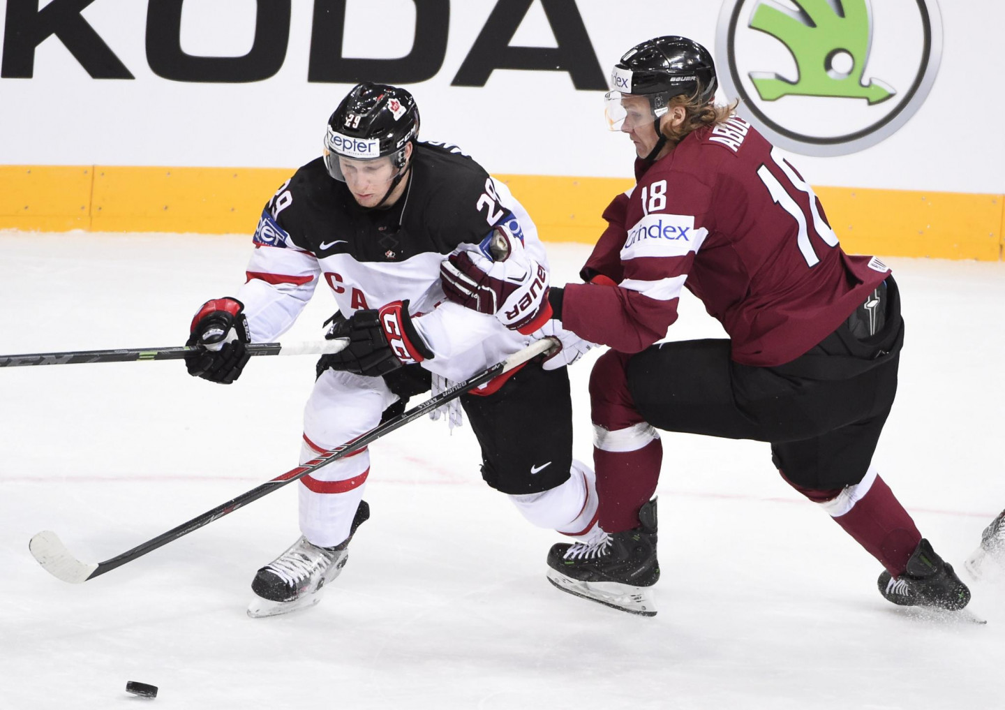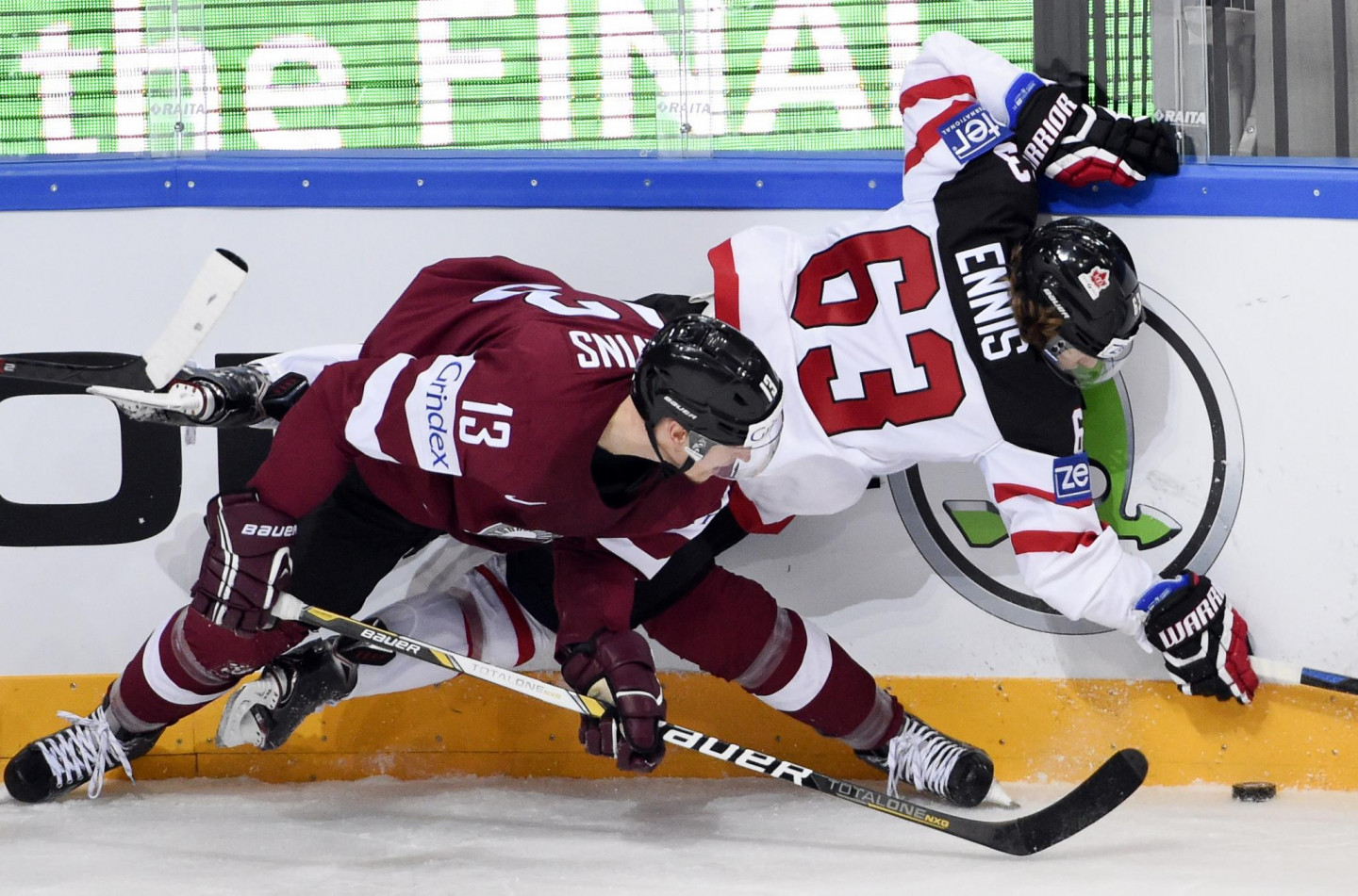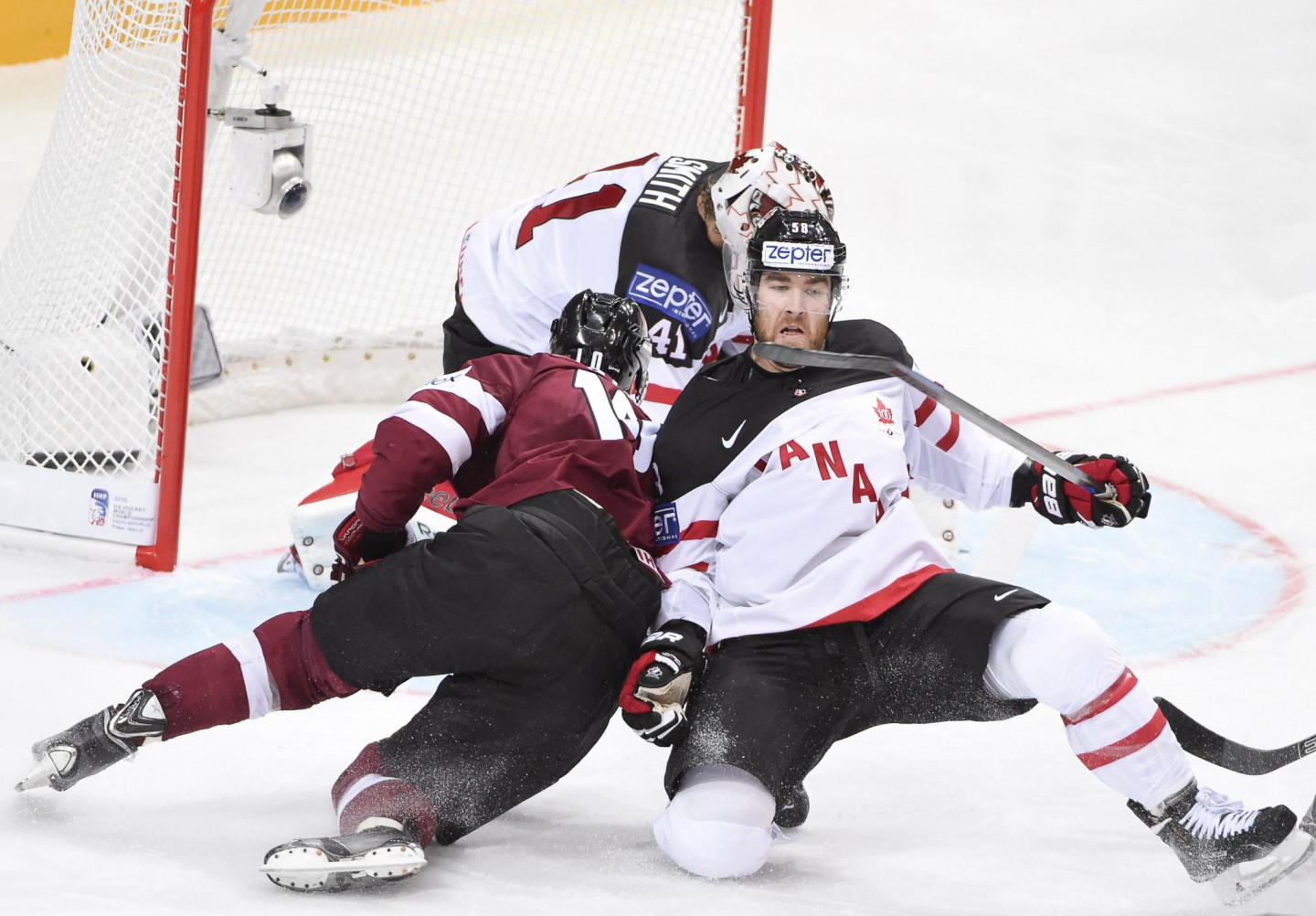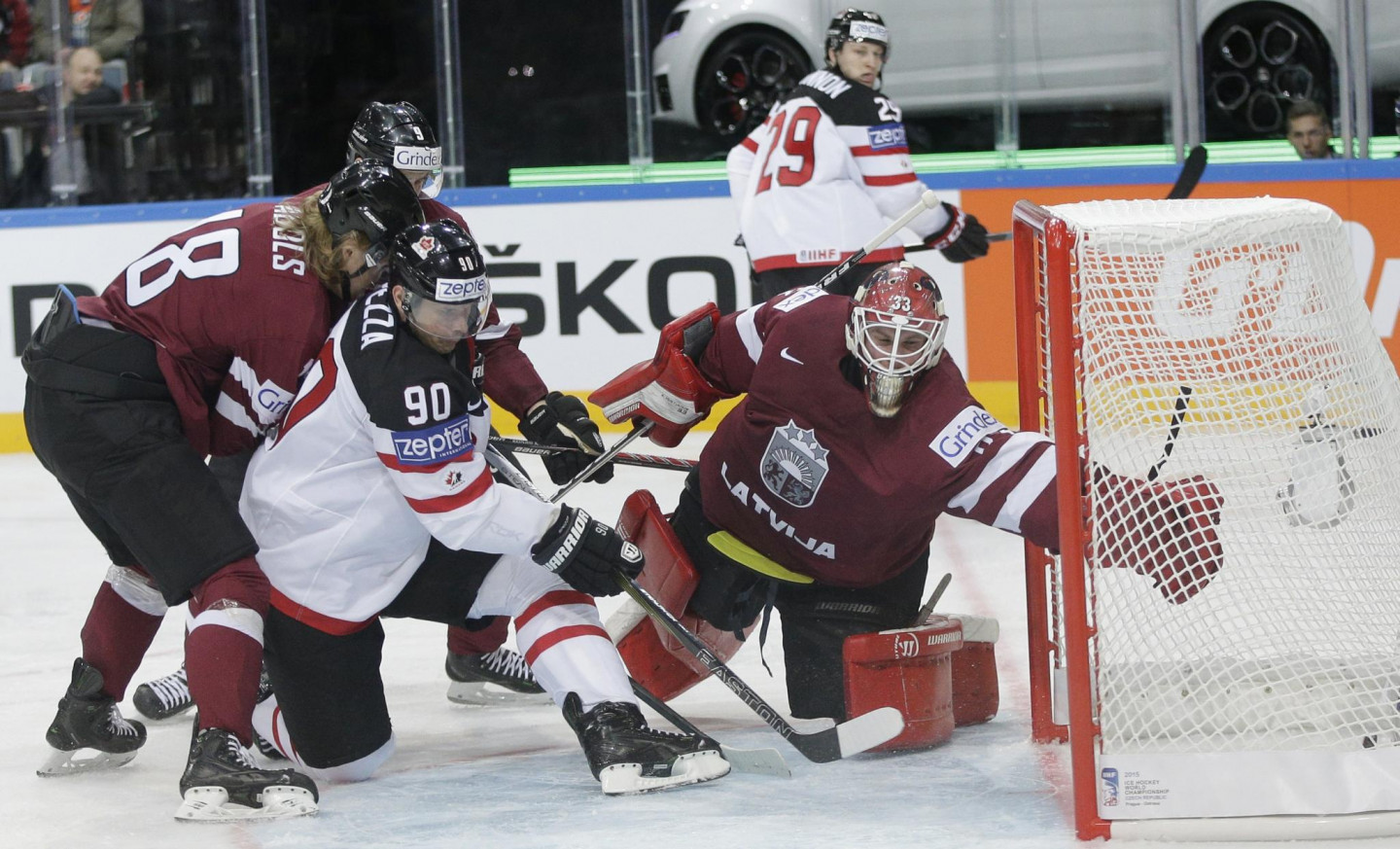 Neveiksmīgi pasaules hokeja čempionātu sāka Aleksandra Beļavska vadītā Latvijas izlase, kas jau pirmo 23 minūšu laikā ielaida piecus vārtus un atzina titulētās Kanādas pārākumu (1:6). Labu spēli aizvadīja Ervīnu Muštukovu nomainījušais Edgars Masaļskis, kuru ar soda metiena palīdzību pārspēja vienīgi Sidnijs Krosbijs, bet goda vārtus Latvijai pēdējā trešdaļā guva Kaspars Daugaviņš.