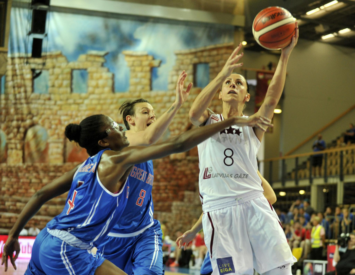 Latvijas sieviešu basketbola valstsvienība sestdien, 13. jūnijā, uzvarēja Lielbritāniju ar rezultātu 67:58 un saglabāja izredzes iekļūt nākamajā kārtā, kur spēlēs trīs spēcīgākās C grupas komandas. Anete Jēkabsone-Žogota sāka izšķirošo izrāvienu, trešajā ceturtdaļā gūstot 12 punktus. Svētdien plkst. 20:00 Latvija sacentīsies pret Krieviju, kurai šovakar nebija jāspēlē.