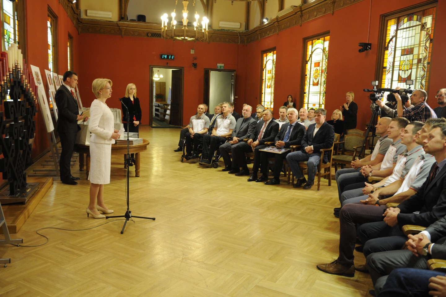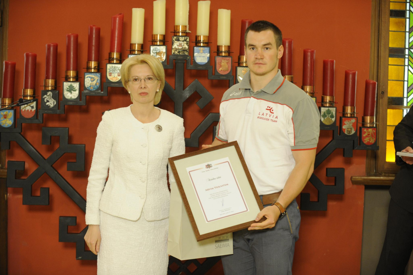 Ceturtdien, 19. maijā, Ināra Mūrniece Saeimas namā sveica Latvijas bobsleja, skeletona un parabobsleja sportistus