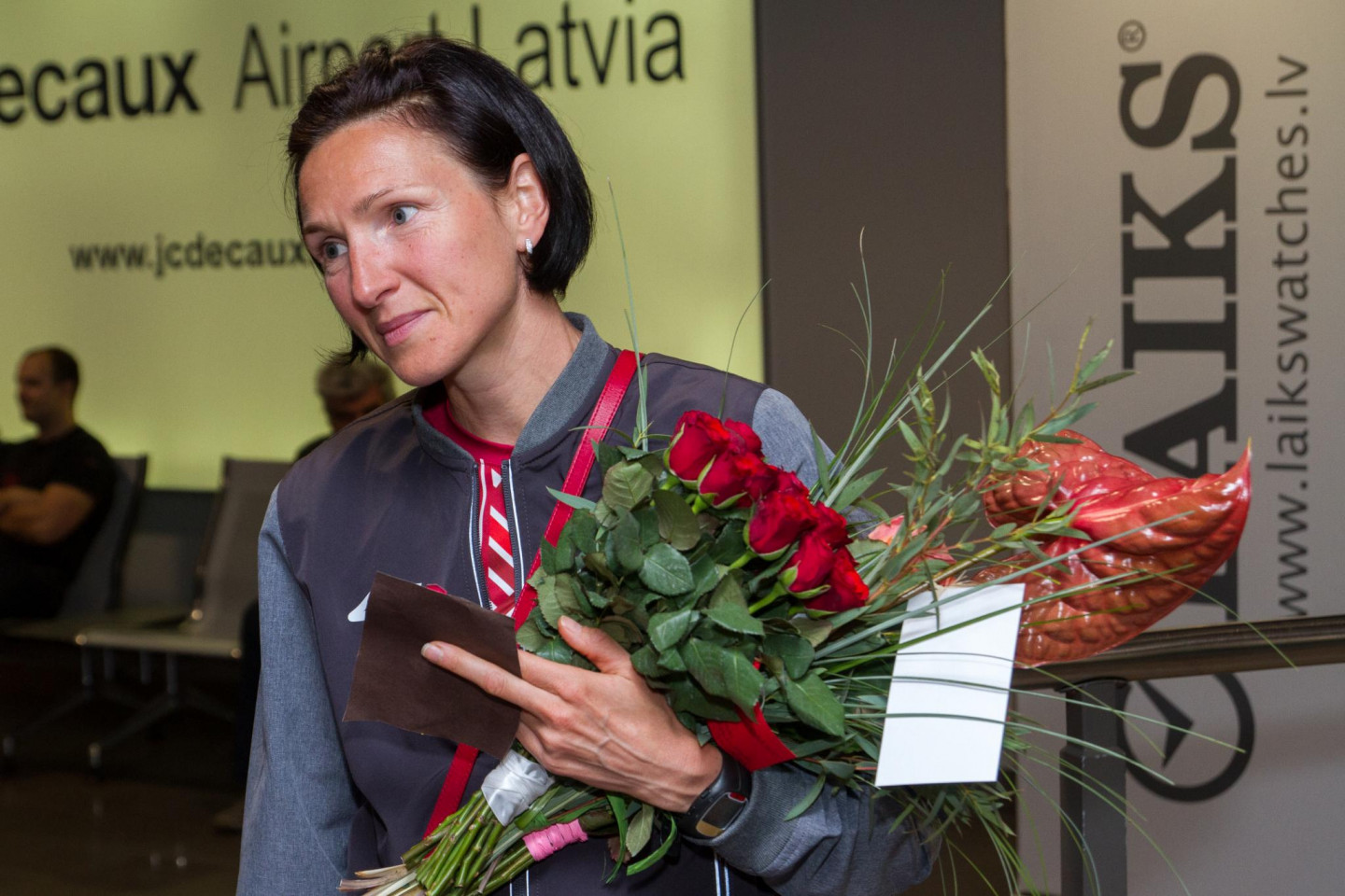 Jeļena Prokopčuka Lidostā Rīga atgriežas no Riodežaneiro olimpiskajām spēlēm