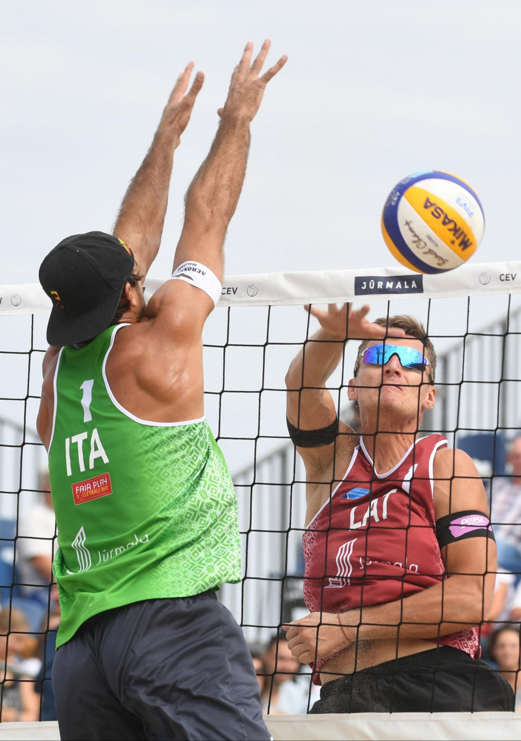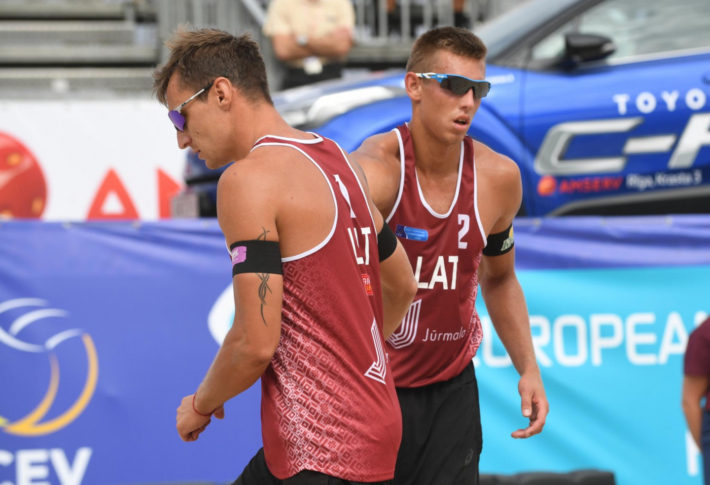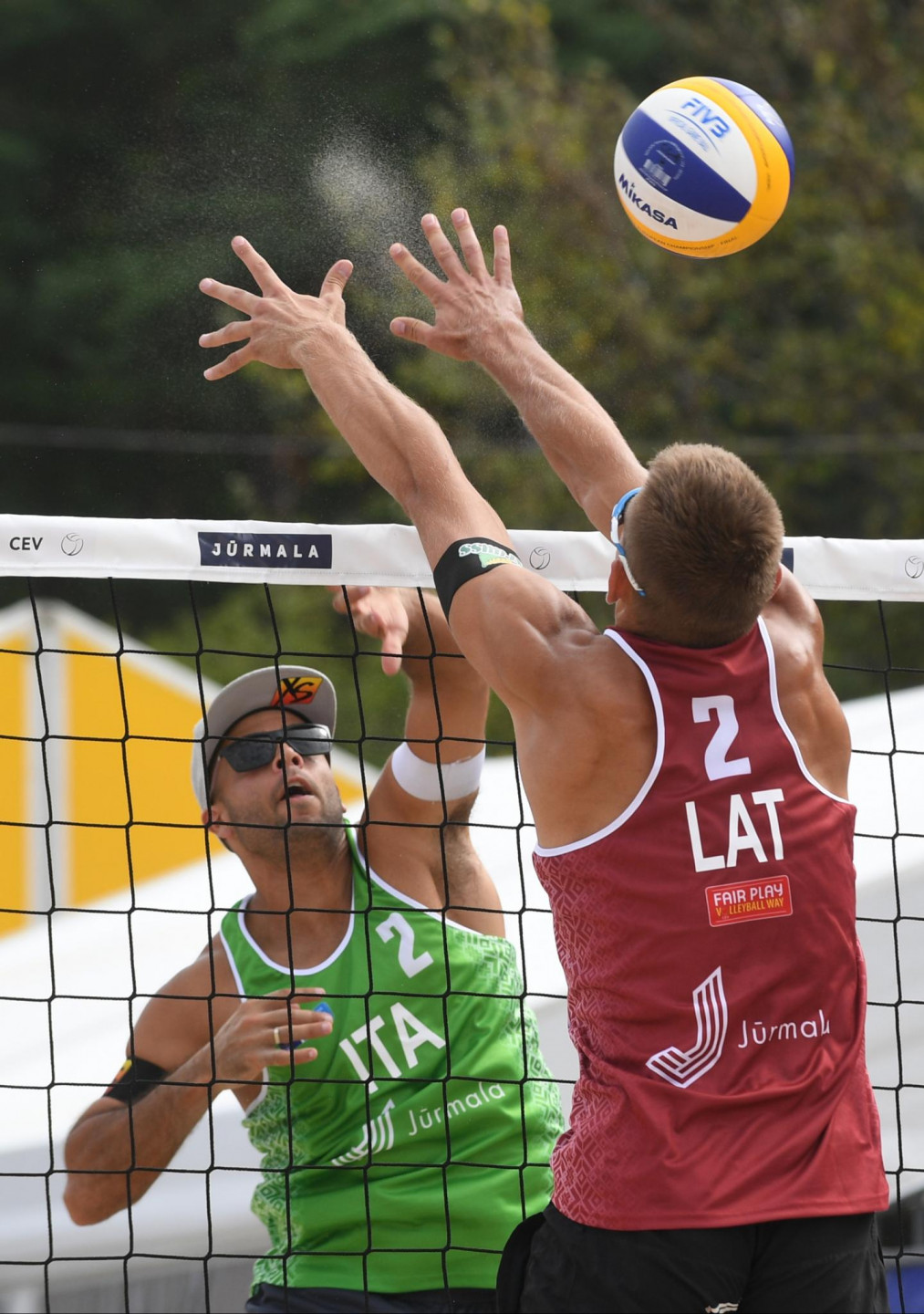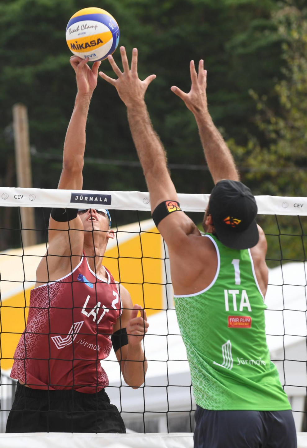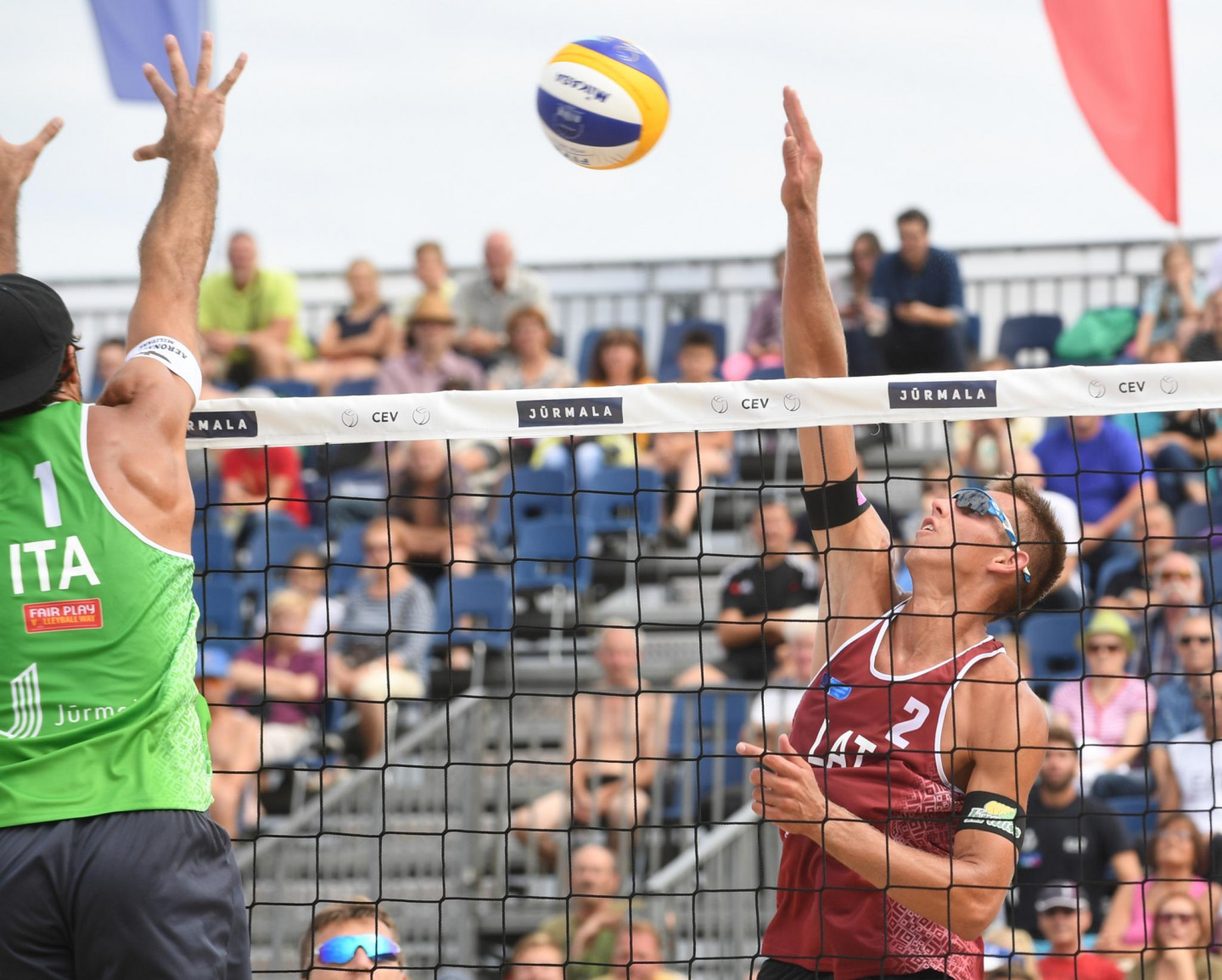 Eiropas čempionāts pludmales volejbolā turpina ritēt neveiksmīgi visiem līdz šim startējušajiem Latvijas duetiem. Pirmajā mačā ar 0:2 (18:21;15:21) neveiksmi piedzīvoja arī Mārtņš Pļaviņš/Haralds Regža, kuri atzina itāļu Aleksa Ranjēri/Adriana Karambulas pārākumu, vēsta portāls sportacentrs.com.