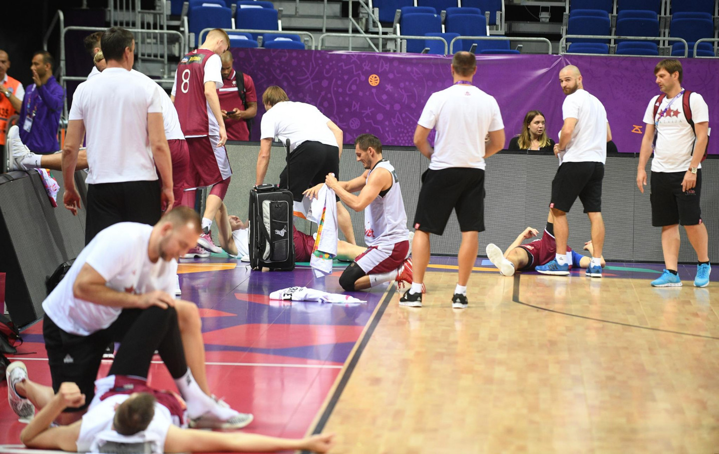 Latvijas izlases basketbolistiem šodien bija brīvdiena no spēlēm. Tas nemainīja to, ka izlase aizvadīja rīta treniņu, kurā nepiedalījās daži no spēlētājiem. Kā jau minēts, vairākus izlases spēlētājus skāris vīruss.