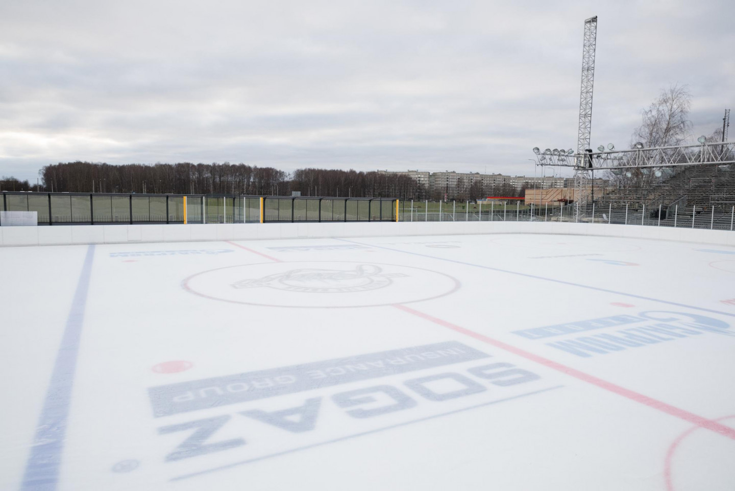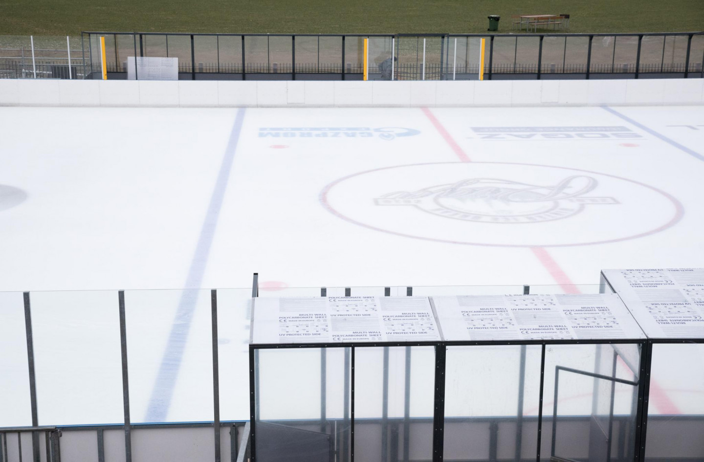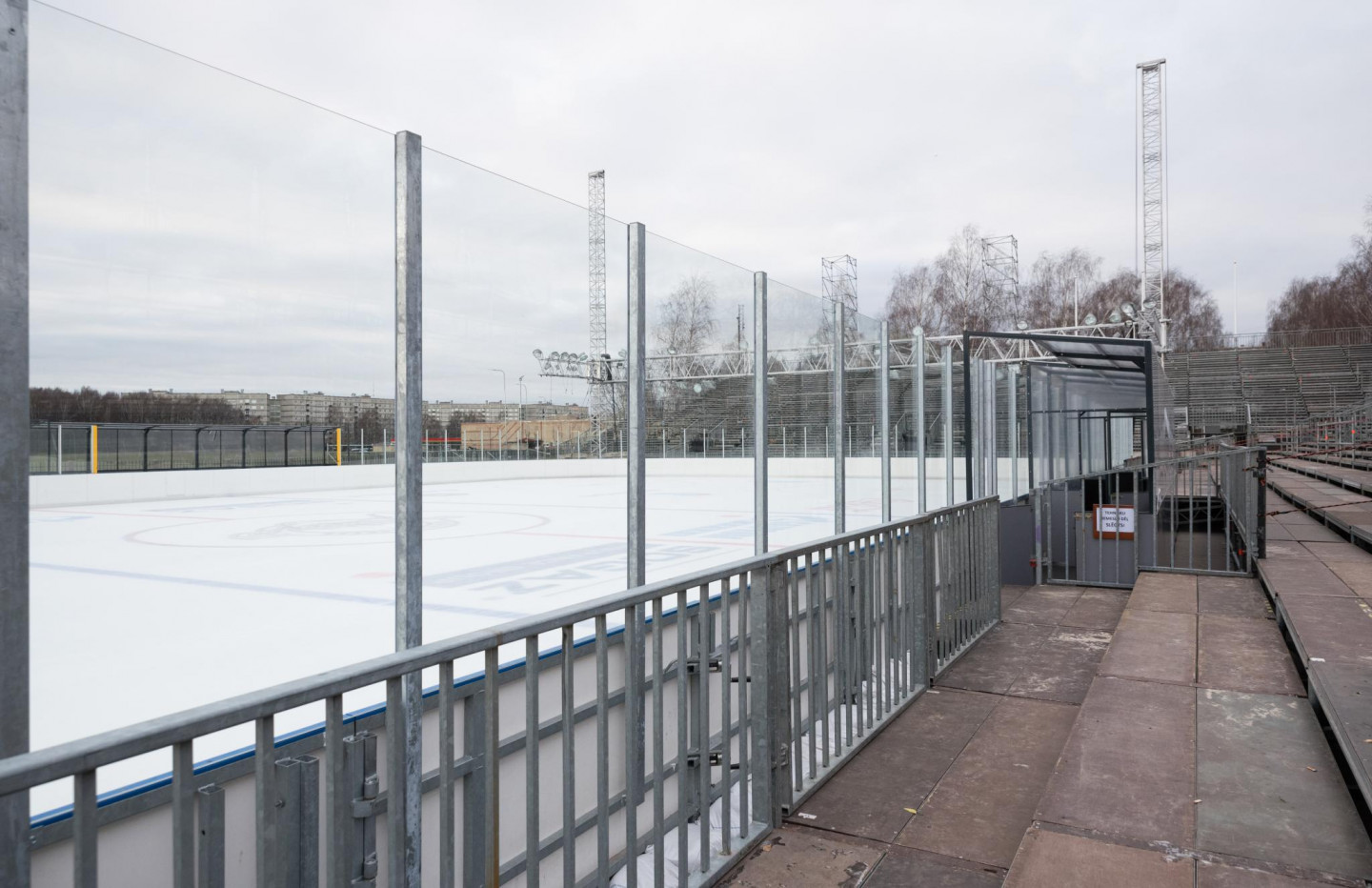 Hokeja laukums Rīgas 84. vidusskolas sporta kompleksā, kur 20. janvārī plkst.13.00 DINAMO RĪGA aizvadīs KHL regulārā čempionāta spēli pret DINAMO Minska hokeja laukumā zem klajas debess.