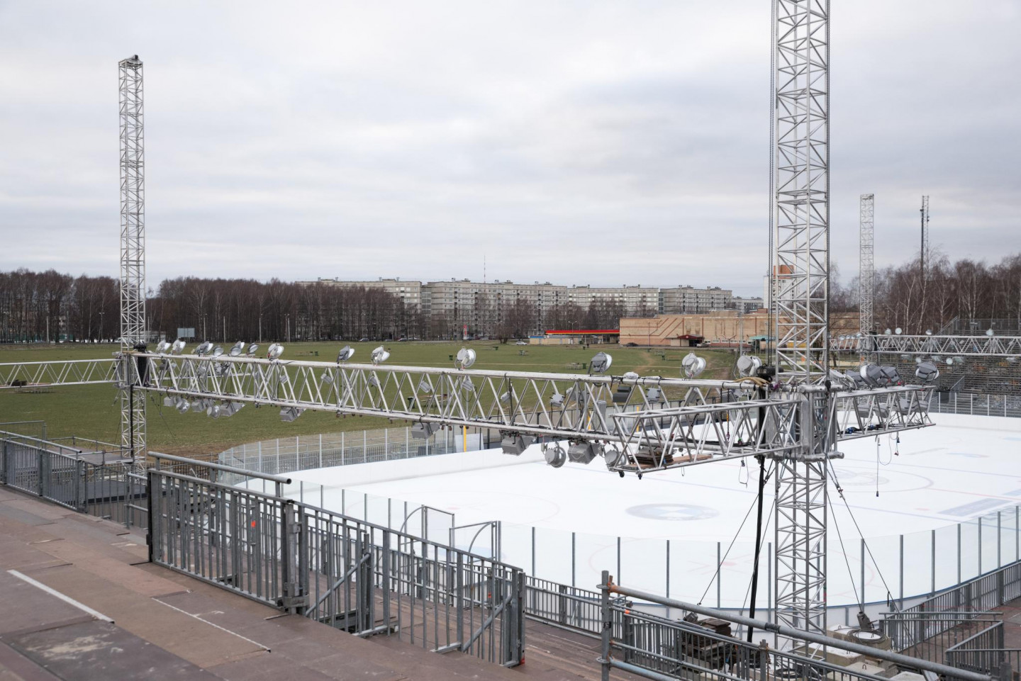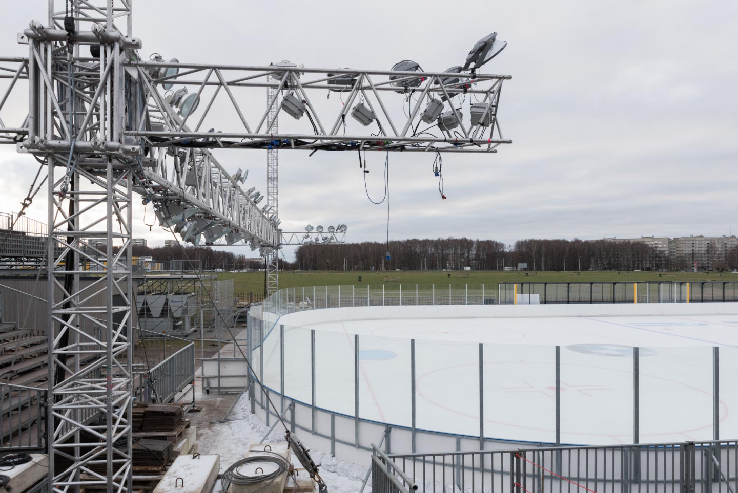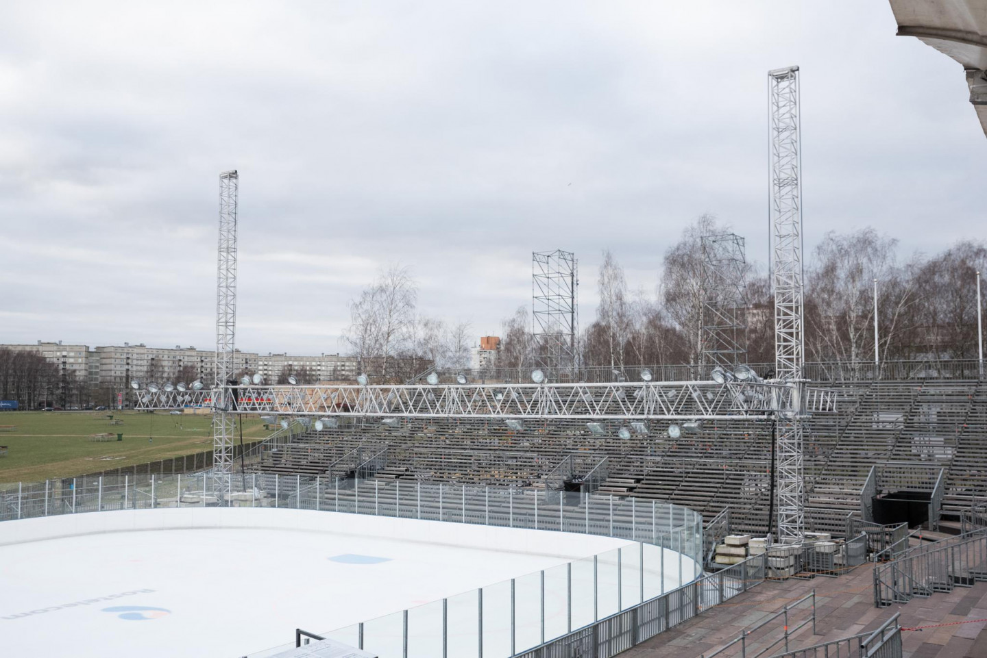 Hokeja laukums Rīgas 84. vidusskolas sporta kompleksā, kur 20. janvārī plkst.13.00 DINAMO RĪGA aizvadīs KHL regulārā čempionāta spēli pret DINAMO Minska hokeja laukumā zem klajas debess.