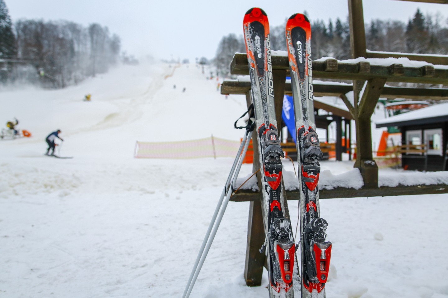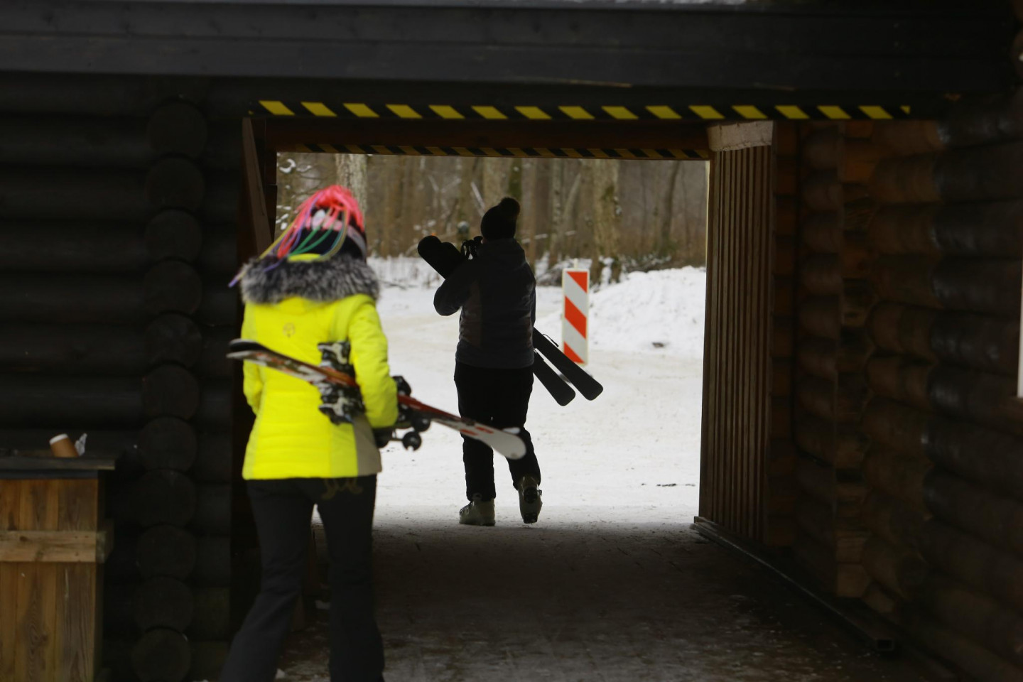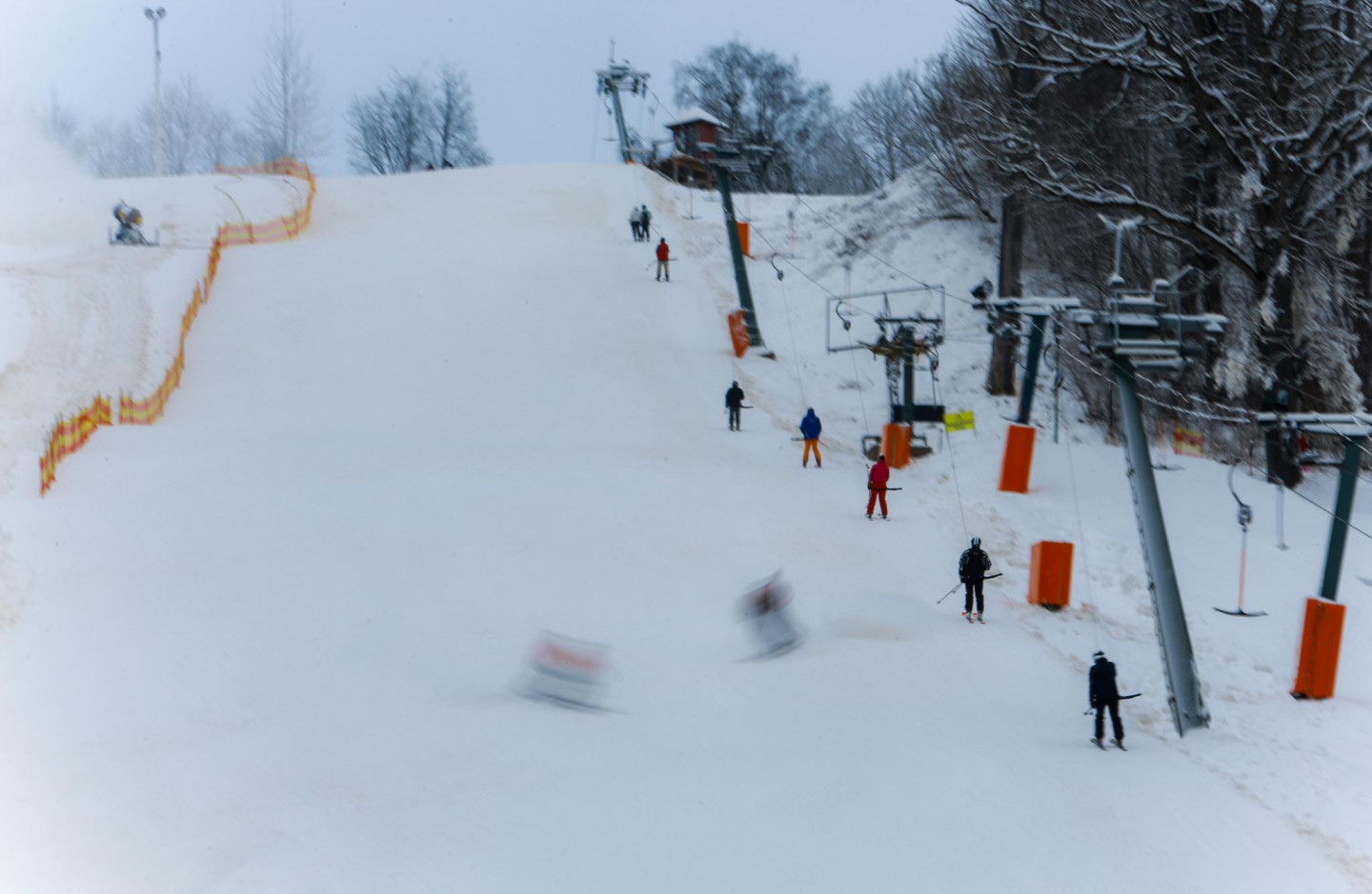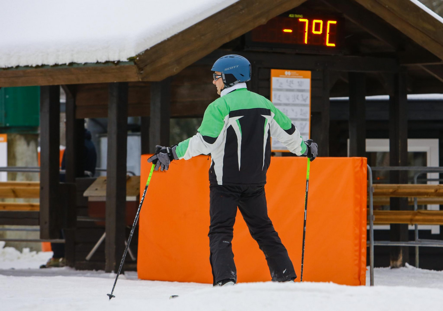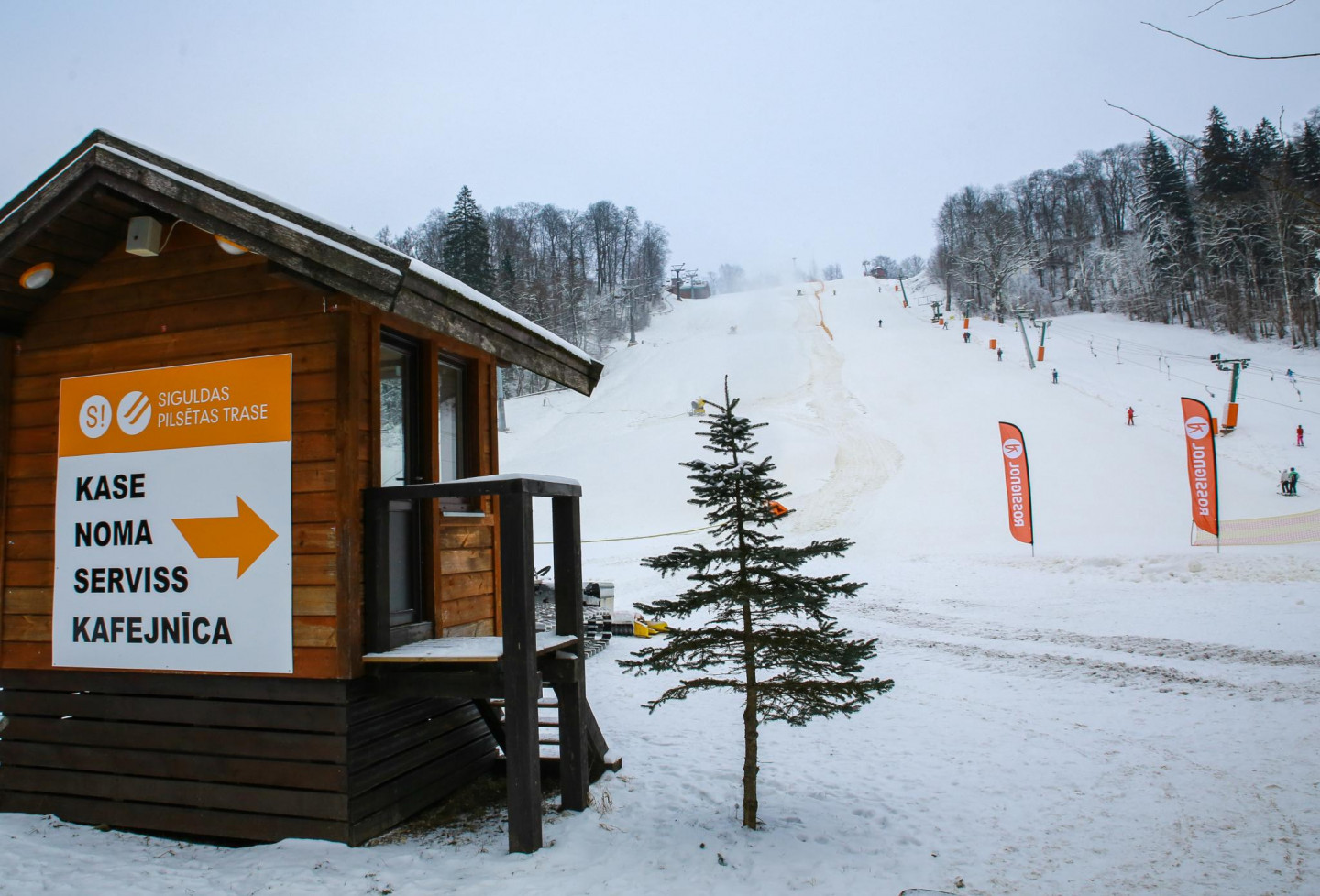 Slēpotāji, snovotāji un citu ziemas prieku baudītāji Siguldas pilsētas trasē steidz ķert sniegu, kamēr tas vēl nav nokusis.