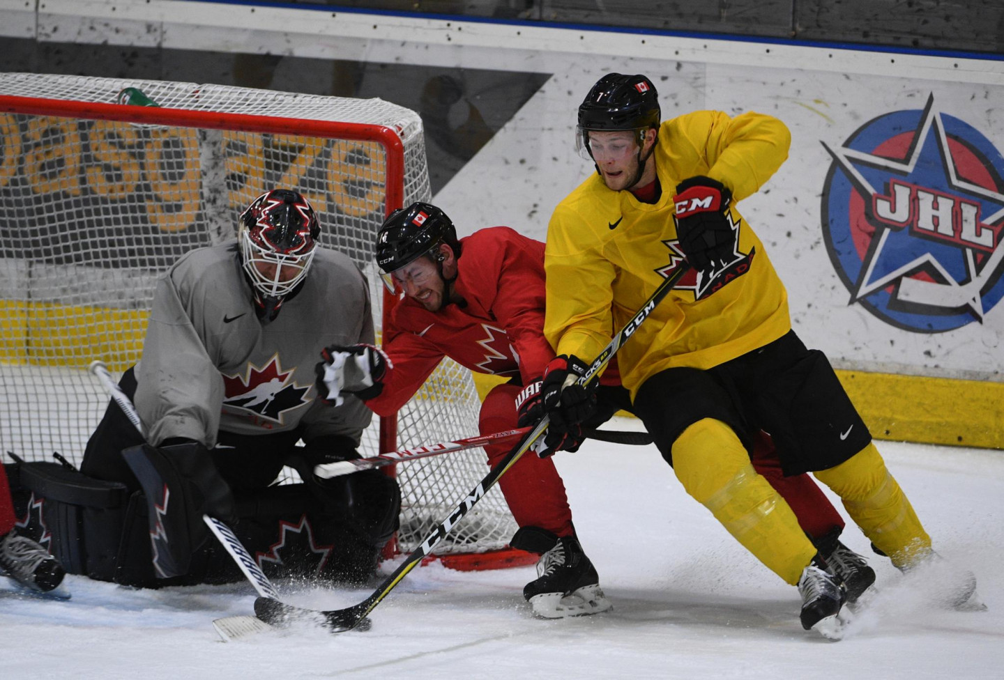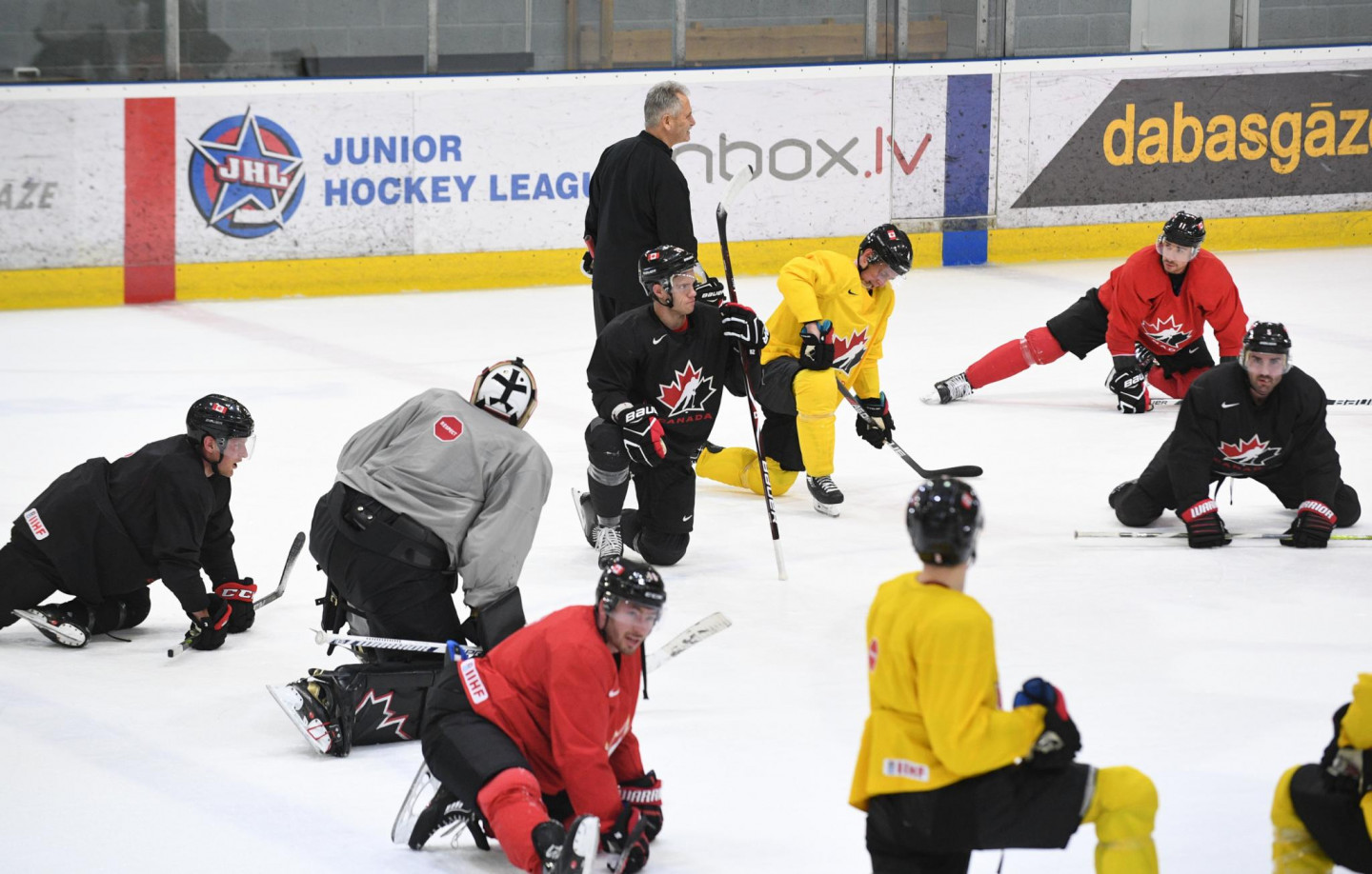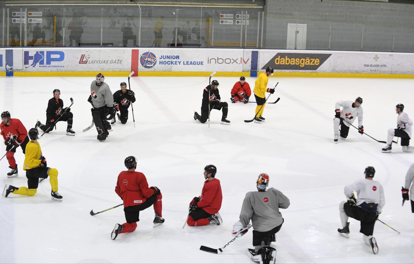 Kanādas olimpiskās hokeja izlase aizvadīja treniņu Inbox.lv ledus halle. Latvijas spēkošanās ar Kanādas izlasi notiks svētdien, 4. februārī.