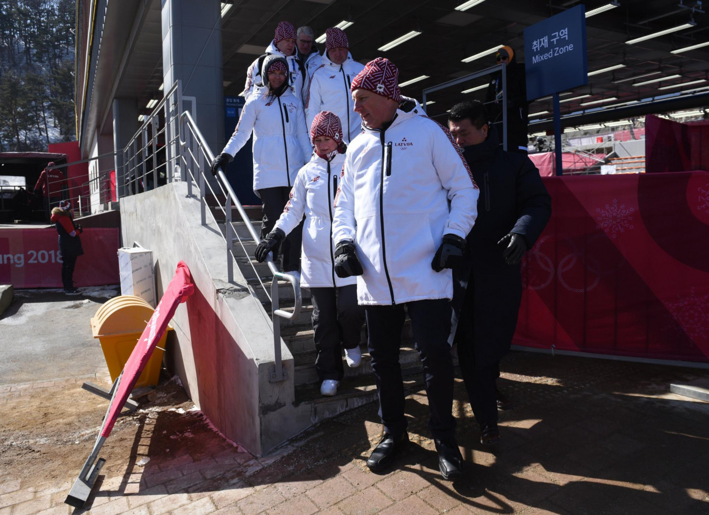 Latvijas skeletonisti Martins Dukurs, Tomass Dukurs un Lelde Priedulēna aizvadījuši treniņu pirms nozīmīgajiem startiem olimpiādē. Treniņus vēroja arī Latvijas prezidents Raimonds Vējonis.
