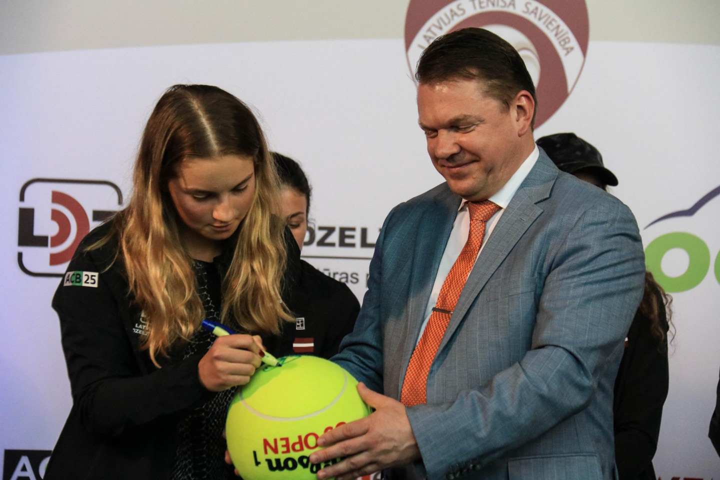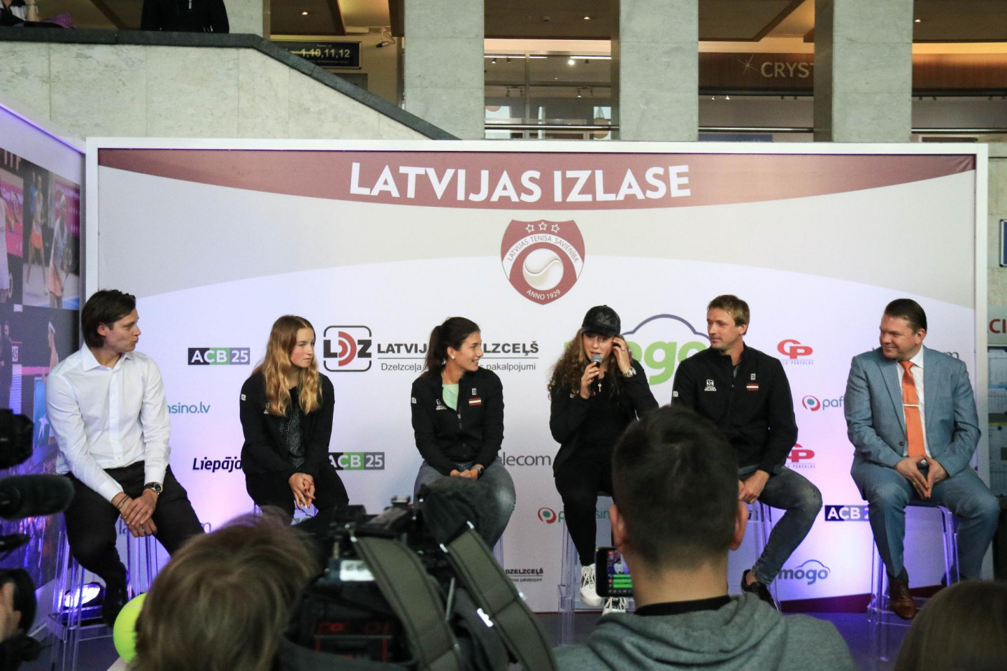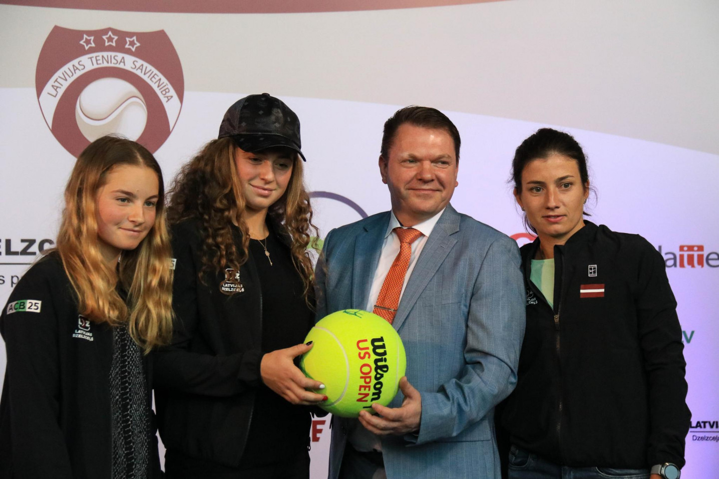 Pirms pārspēles pret Krieviju par vietu Federāciju kausa otrajā pasaules grupā Rīgā notika tikšanās ar Latvijas sieviešu tenisa izlasi, tostarp tās lielākajām zvaigznēm Aļonu Ostapenko un Anastasiju Sevastovu.