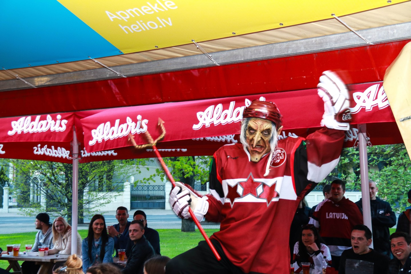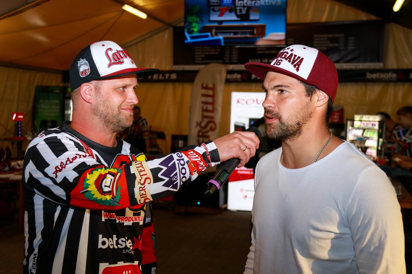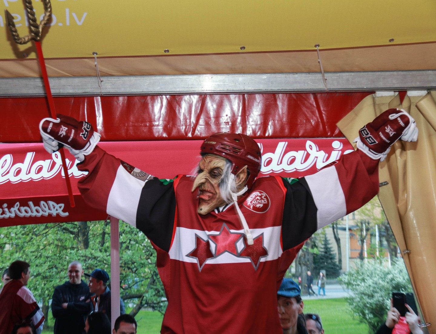 Rīgā, pie Kongresu nama, ir uzslieta hokeja fanu telts. Kamēr šodien fanu teltī kopā ar faniem no 16:30 būs Latvijas hokeja izlases un Rīgas Dinamo uzbrucējs Lauris Dārziņš un Latvijas slavenākais rallijkrosa autobraucējs Reinis Nitišs, tikmēr iepriekš tur viesojās hokejists Kaspars Daugaviņš.
