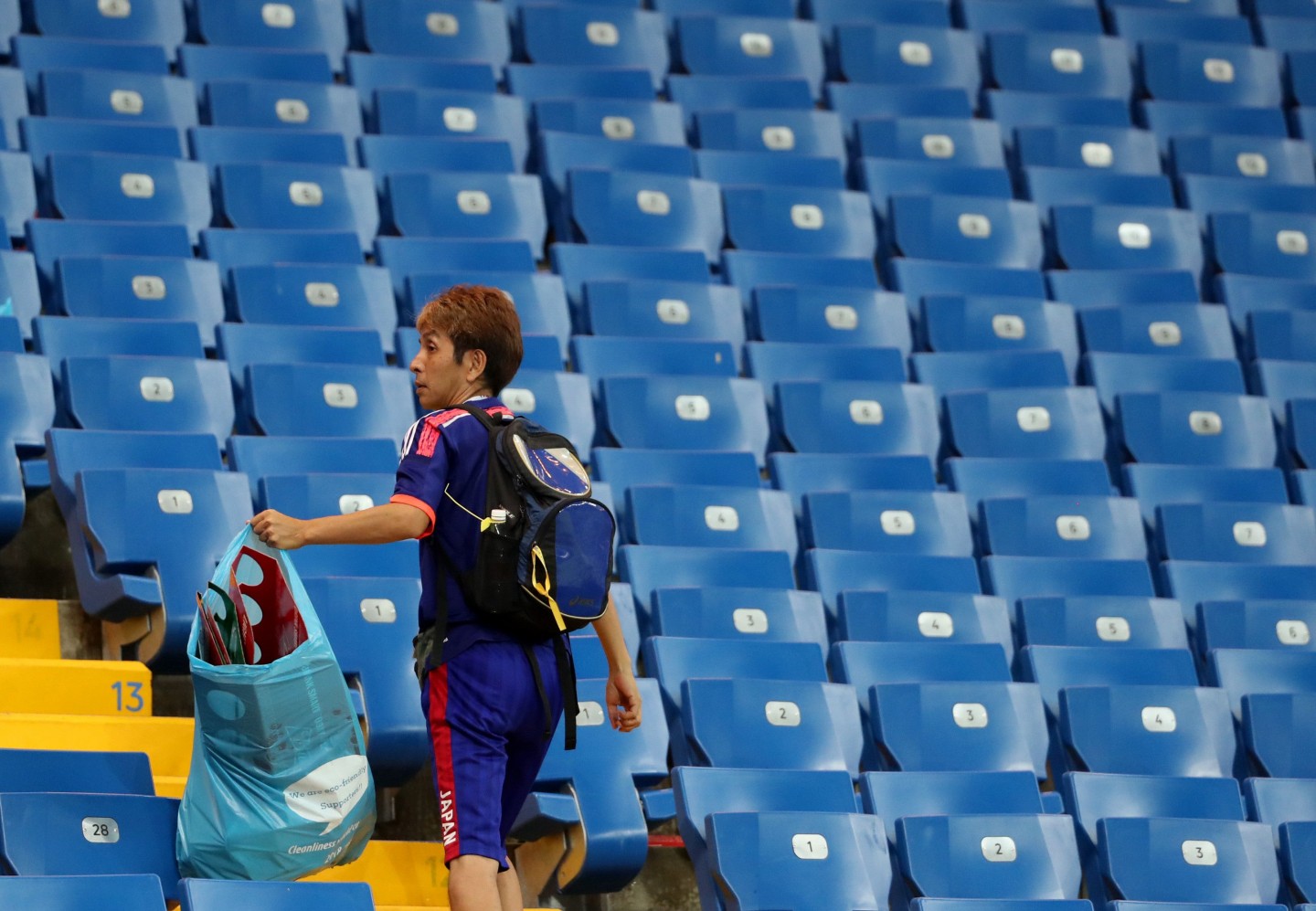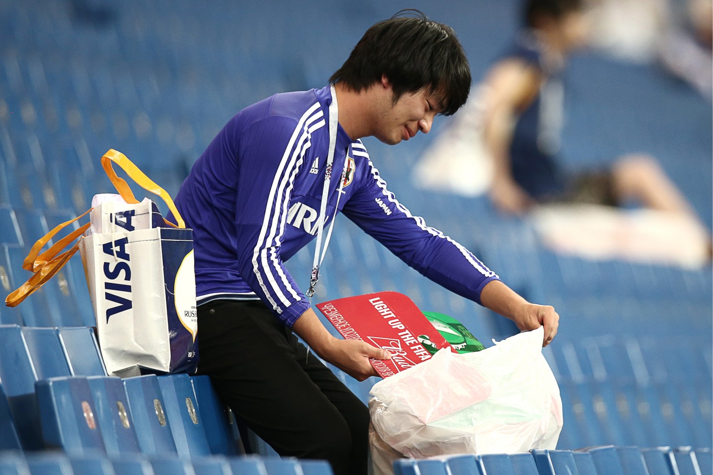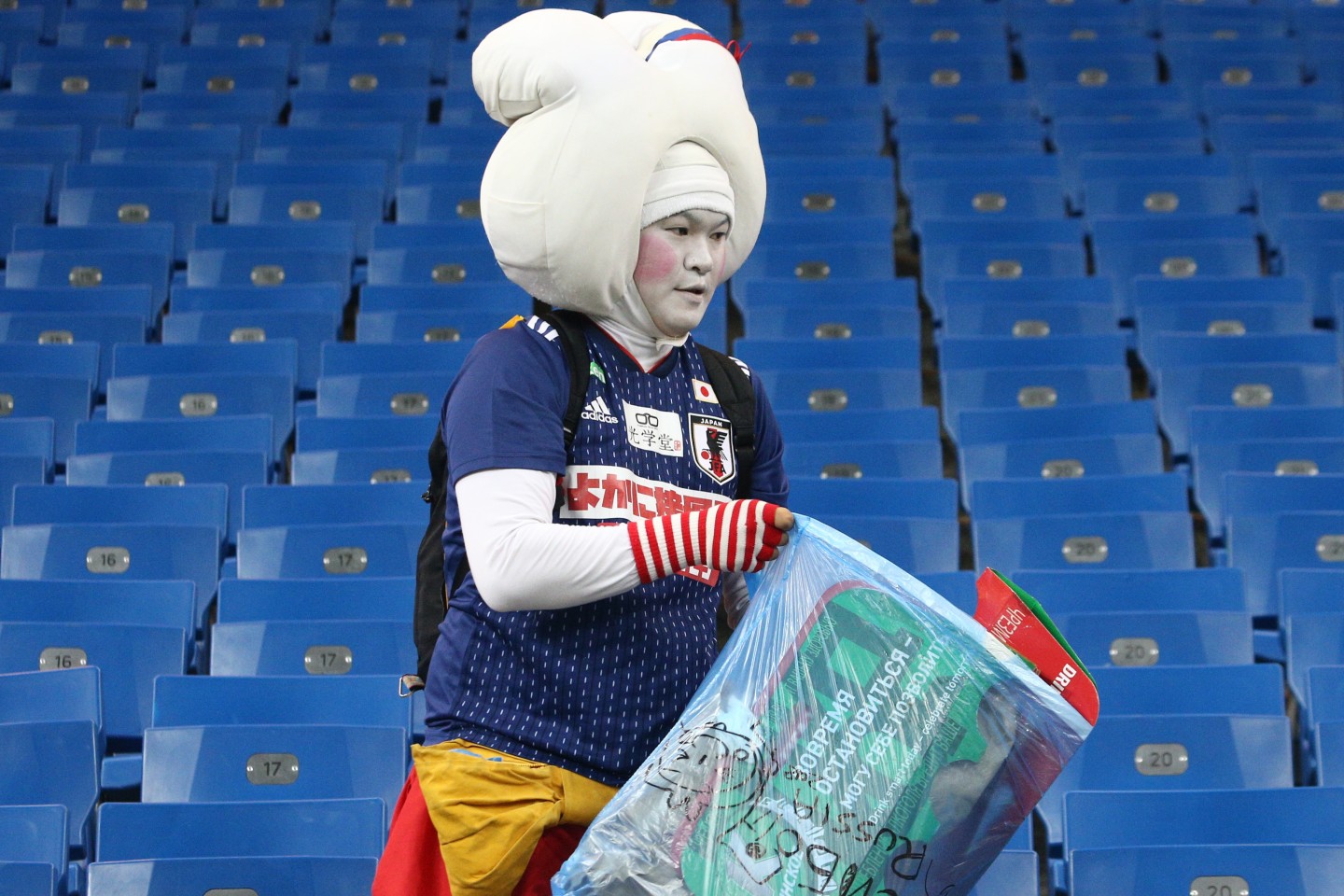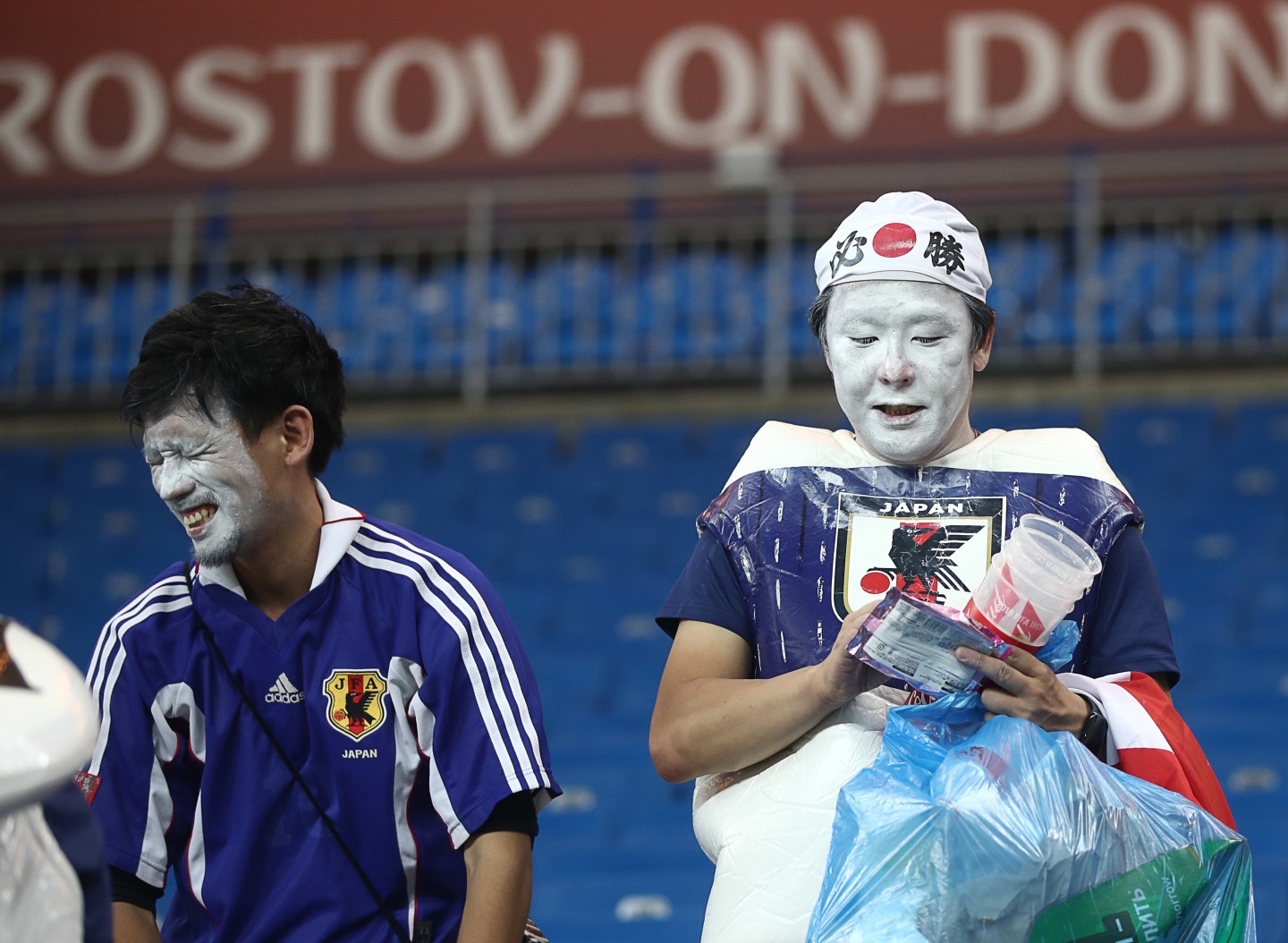 Japānas līdzjutēji izpelnījušies mediju un vietējo uzmanību, ka pēc futbola mača vienmēr sakopa stadionu. Arī pēc Japānas izstāšanās no Pasaules kausa izcīņas, līdzjutēji ar zaudējuma rūgtumu sirdī savāca izmētātos atkritumus.