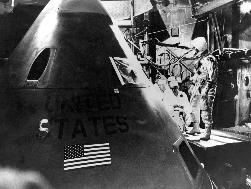 «Apollo 1» misijas dalībnieki Vērdžils Grisoms, Eds Vaits un Rodžers Čafijs sadega kosmosa kuģī uz Zemes pirms lidojuma testu laikā.
