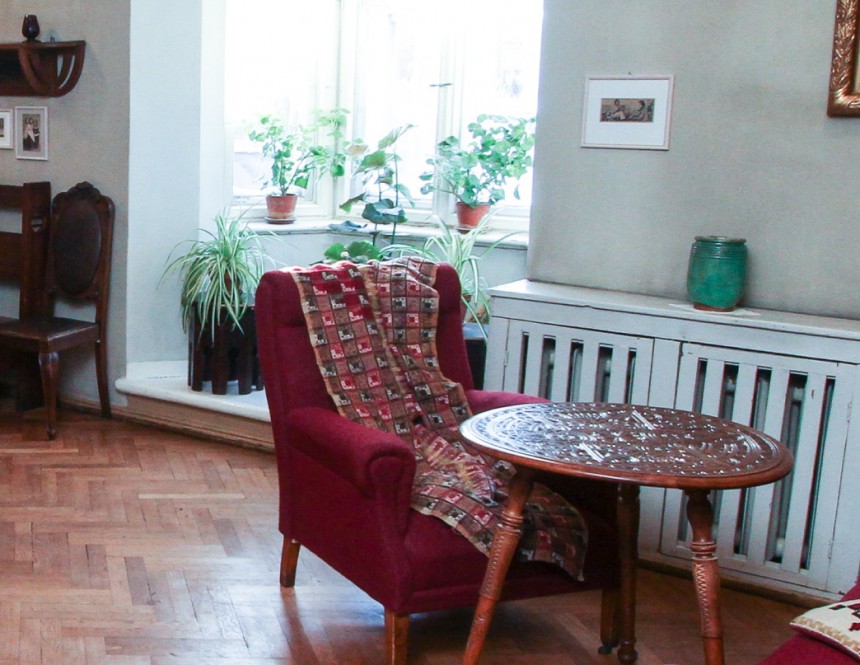 Mājokļa atmosfēru labvēlīgi ietekmēs purpurkrāsa. Šo dzīvokli īpaši rotās un te labi «jutīsies» no tālienes atvesti priekšmeti un bronzas trauki, kā arī teleskopi un globusi.