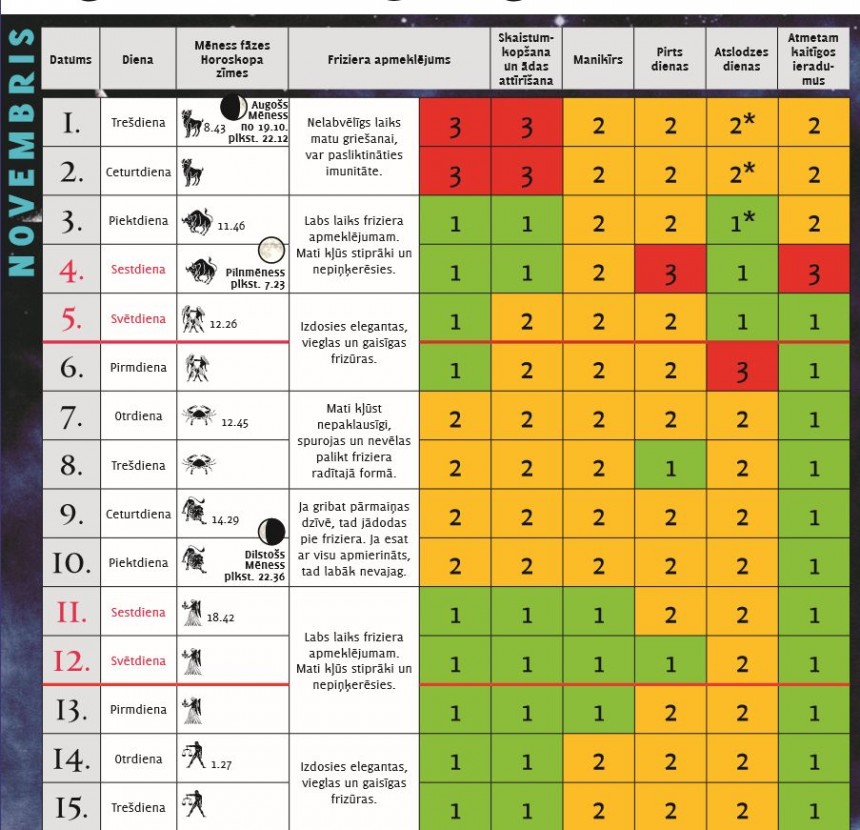 Žurnāls "Praktiskā Astroloģija" iesaka, kad vislabāk veikt skaistuma procedūras, bet kuras dienas nav tām labvēlīgas.