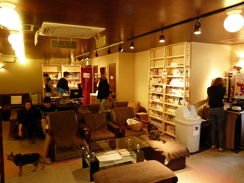 Parīzes kafejnīca "Cafe des Chats" veidota pēc Tokijas piemēra, kur izveidotas desmitiem kaķu kafejnīcas, ļaujot apmeklētājiem, kas nevar turēt mājdzīvnieku, izbaudīt kādu dzēriena krūzi ar murrājošu kaķi klēpī.