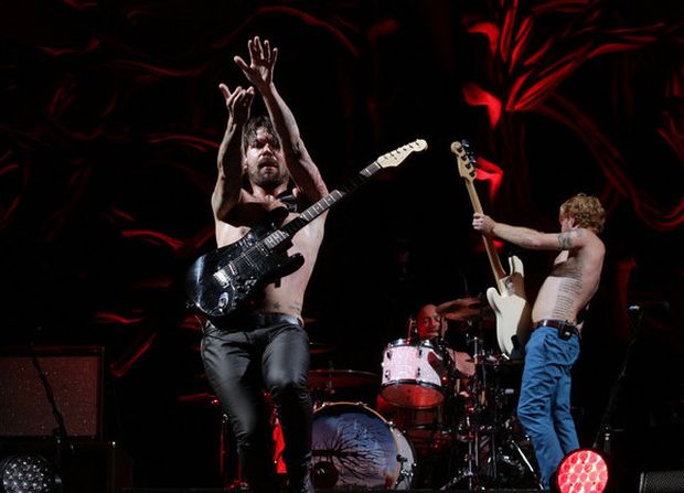 Lai gan – sajūsmā tā bija jau no pašiem pirmajiem „Biffy Clyro” akordiem. Diezgan pārsteidzoši (vismaz šo rindu autoram), taču kuplā skaitā „Palladium” koncertzāli piepildījušie klausītāji zināja praktiski visu dziesmu, kā minimums, piedziedājumu vārdus - dažām skaļāk, bet citām klusāk tika dziedāts līdzi – sanāca tādi kā nelieli Dziesmu svētki skotu grupas pavadījumā. Ko nu par faniem, kuri tiešām aktīvi līdzi juta visam uz skatuves notiekošajam – arī sākotnēji skeptiski noskaņotais šo rindu autors nonāca „Biffy Clyro” burvības gūstā jau ar viņu pašām pirmajām dziesmām. Uz skatuves kāpuši puspliki (nepārprotiet - virzienā no augšas līdz vidum...), trijotne Saimons Nīls (vokāls, ģitāra), Džeimss Džonstons (bass, vokāls) un Bens Džonstons (bungas, vokāls) spēlēja ar maksimālo atdevi visu koncertu – tā, it kā viņi šīs dziesmas uz skatuves izpildītu nevis jau n-simto, bet pirmo reizi. No kurienes šiem vīriem tāds spēks un enerģija? Nav taču nekādi puikas, 33 – 34 gadus veci vīri. Nesaprotami, bet apbrīnojami. Skanējumu bagātināja vēl viens ģitārists un taustiņnieks, kuri bija kautrīgi iestūmušies skatuves stūrītī – galvenās lomas spēlēja jau minētie trīs vīri.