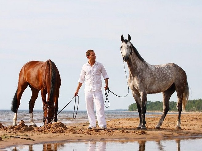 Pašmāju mūziķis Lauris Reiniks sociālajā tīklā Instagram publicējis fotogrāfijas, kurās redzams Baltijas jūras krastā pozējam kopā ar zirgiem.