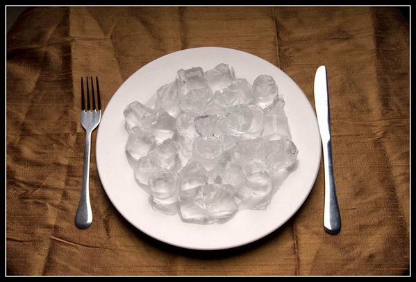 „Izbaudu savu svaigo vegānu organisko maltīti, kurā nav ne tauku, ne glutēna, ne ģenētiski modificētu organismu, ne sojas, ne antibiotiku, turklāt tai ir pazemināt ogļhidrātu daudzums,” vēsta lepns ieraksts pie bildes, kurā uz šķīvja sakrāmēti ledus kubiciņi.