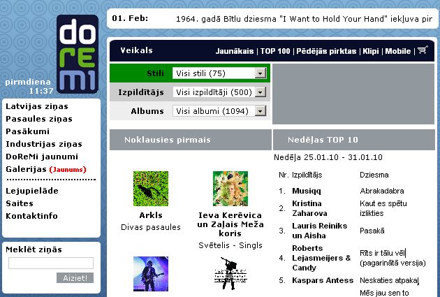 Šodien, plkst 16.50 LTV raidījuma Sems tiešraidē notiks mūzikas lejupielāžu portāla Doremi.lv balvu pasniegšana 2009. gada pieprasītāko dziesmu izpildītājiem. Tiešraidē ar saviem hitiem piedalīsies tādi mākslinieki kā Jenny May & Jānis Grodums, Musiqq, Lauris Reiniks, Aisha, Per, Mārtiņš Friemanis, Putnu balle, Kristīna Zaharova un Kaža.