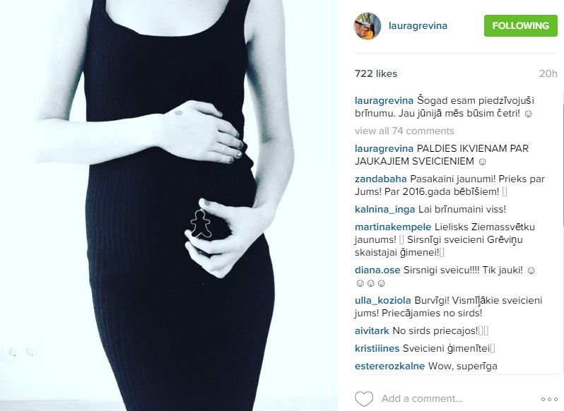 Radio balss un dīdžeja Toma Grēviņa sieva Laura Grēviņa Pirmajos Ziemassvētkos paziņoja par gaidāmo ģimenes pieaugumu, vēsta viņas Instagram konts.
