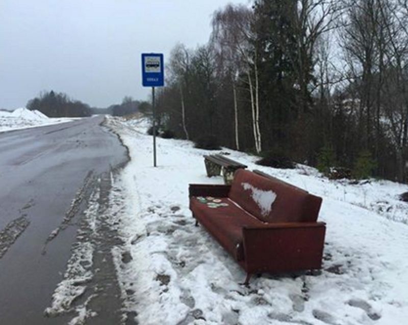 “Talsu pasažieru pārvadātāji rūpējas par klientu ērtībām,” ziņo facebook lapa “Skandāli”, daloties ar attēlu, kurā redzams pieturvietā novietots dīvāns. Ar šo attēlu dalījušies jau vairāk nekā 350 ļaužu, kuri pauž savu prieku par “ērto” pieturvietu.