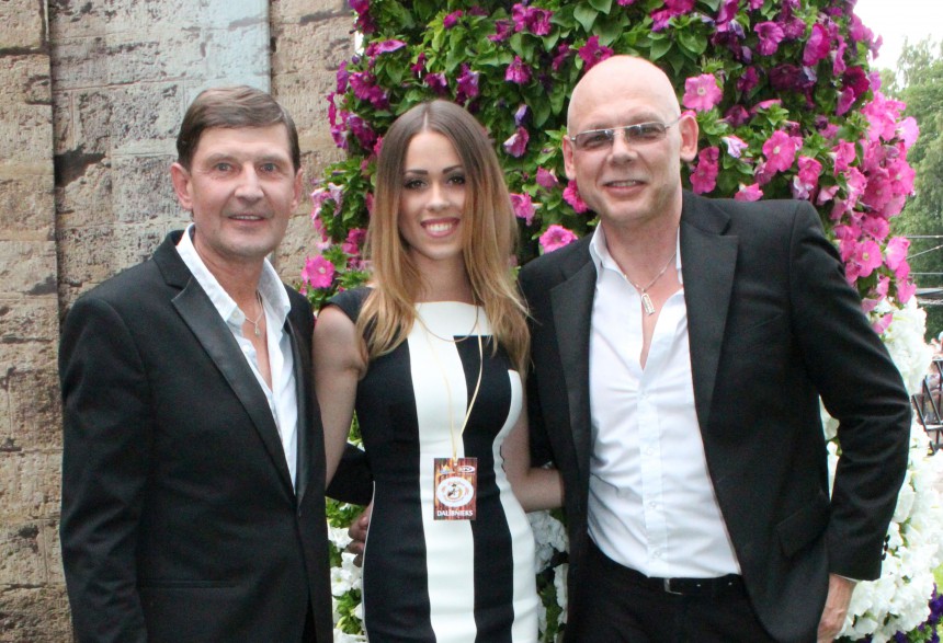 Uz šlāgeraptaujas finālu «Tērvetes» mūziķi bija tērpušies baltos kreklos un elegantos uzvalkos, bet apburošā brunete Katrīna savu kleitu bija pieskaņojusi mūziķiem.