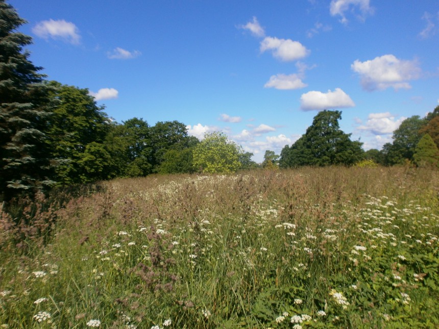 Foto no Talsu tuvējas apkārtnes ar Vandzenes dzejnieka Viļa Veldres vārdiem: "Zied mākoņi, dārzi un pļavas, un vasaras zaļums tik kairs!"