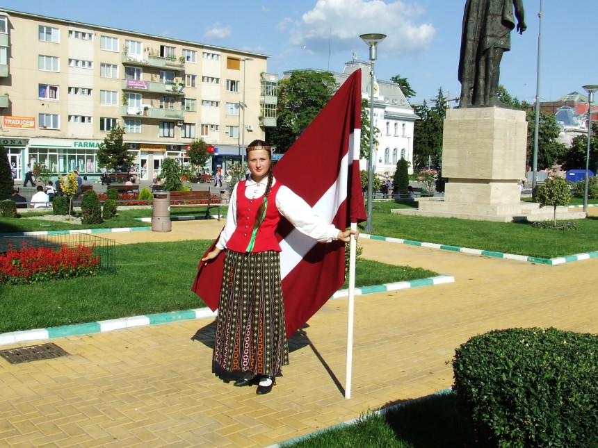 Attēlā es pati Starptautiskā festivālā Rumānijā, lepna par tautas tērpu, par karogu un valsti no kuras esmu atbraukusi parādīt - kā mēs LATVIEŠI mākam!