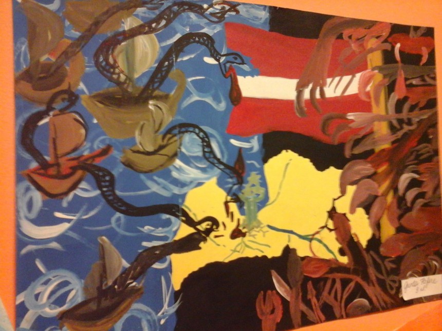 Apraksts: Mana mazā māsa aizgāja uz mūsu skolas salidojumu, kur pie sienas ieraudzīja manis gleznoto bildi par Latviju (bilde pielikumā). Biju par šo gleznojumu jau piemirsusi, bet tur skaidri un gaiši rakstīts: Gunta Feifere, 9. klase. Tagad man jau 33 gadi, bet ja liktu gleznot par Latviju - gleznotu precīzi tāpat! :)