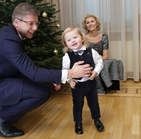 Foto redzams Nils Ušakovs ar dēlēnu Tomu, kā arī sievu Ivetu.