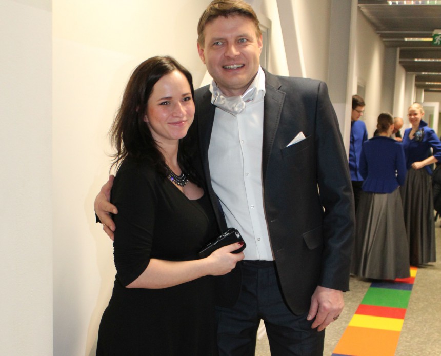 »Vakara Ziņas« jauno pāri sastapa Jelgavā, Zemgales Olimpiskajā centrā, kur tika filmēta TV3 Vecgada vakara koncertspēle «Es šonakt būšu laimīgs!».