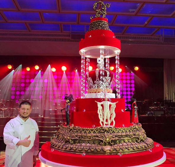 Torte bija teju 3 metrus augsta, zeltītos un sārtos toņos, greznota ar karalisku kroni, īstiem dārgakmeņiem, kā arī Filipa Kirkorova skatuves tēliem, kas tika veidoti no marcipāna un protams bija nogaršojami.