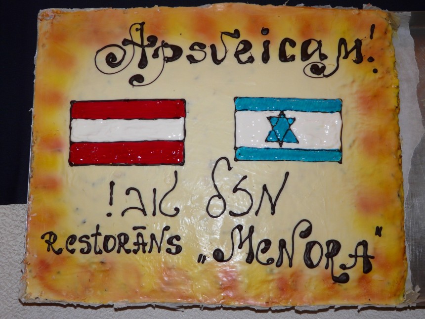 Par godu Latvijas neatkarības atjaunošanas dienai un 20. aprīlī atzīmētajai Izraēlas valsts neatkarības gadadienai ebreju un Vidusjūras restorāna „Menora” pavāri šodien, 5. maijā, Latvijas Valsts prezidentam Valdim Zatleram dāvāja gardu torti.