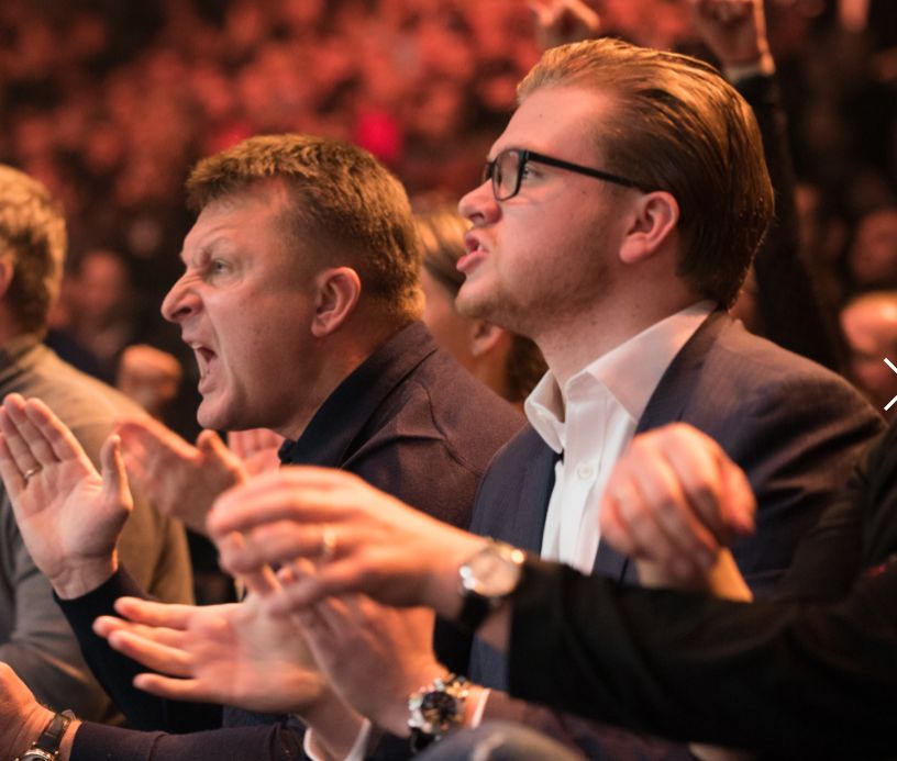 Piemēram, bijušais politiķis, miljonārs Ainārs Šlesers cīņu vēroja ar vecāko dēlu Edvardu. Tēva un dēla vakars VIP sēdvietās Šleseriem izmaksāja aptuveni 800 eiro. Piemiņai par grandiozo notikumu tēvs nobildē dēlu pret boksa ringu.
