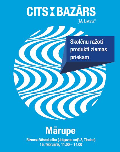 15. februārī “Biznesa Vēstniecībā”, aicinām uz reģionālo gadatirgu“CITS BAZĀRS”, kur pulcēsies 32 skolēnu mācību uzņēmumi no 11 Latvijas skolām.