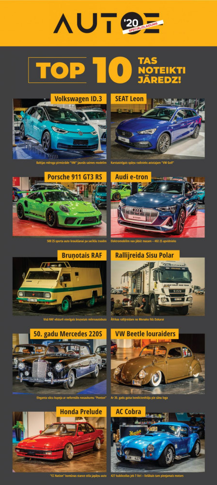 No 25. līdz 27. septembrim Ķīpsalā notiek autoindustrijas izstādes “Auto 2020” speciālizlaidums. Piedāvājam TOP 10, kas arī tev ir jāredz klātienē.