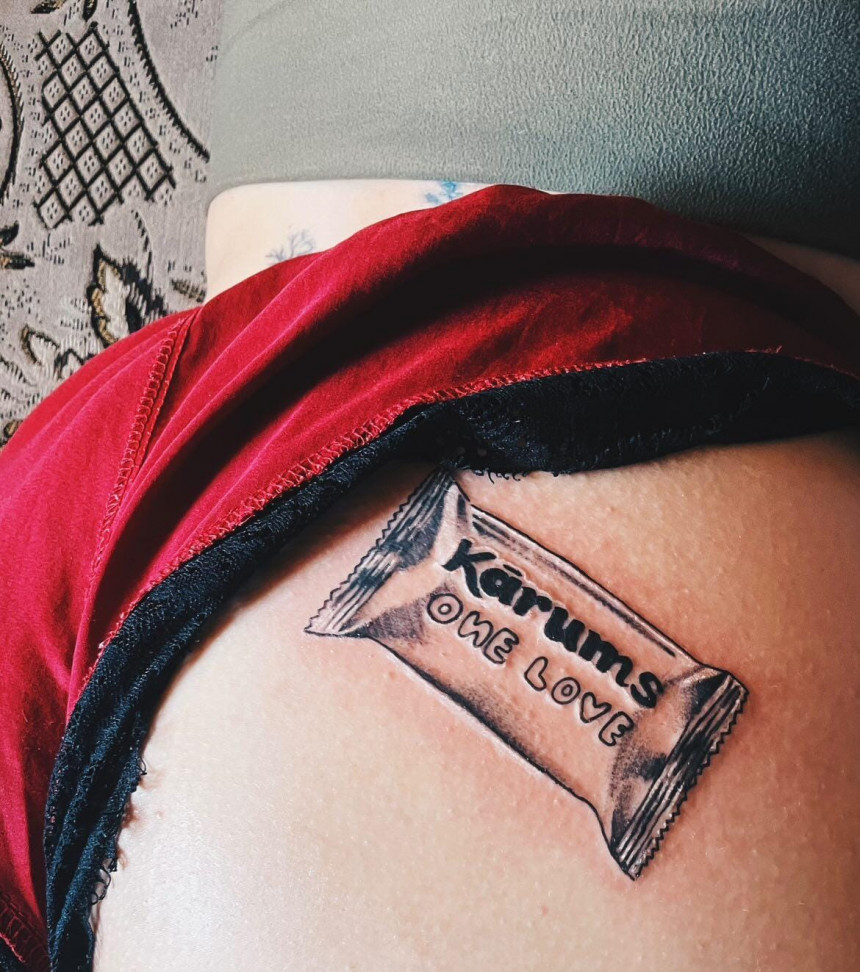 “Sveiki, apliecinot savu milzīgo mīlestību pret Kārums sieriņiem un visu Kāruma produkciju, tapa jauns tetovējums. Paldies Jums! KĀRUMS, ONE LOVE” - šādu ziņu uz "Kārums Instagram" iesūtīja 21 gadus veca dāma, kas sevi raksturo kā ugunīgu rudmati no Liepājas.
