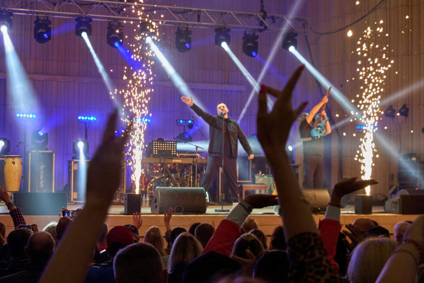 “A-Eiropa” mūziķi smaidot saka, ka jubilejas tūres pirmo koncertu droši varot dēvēt par “divām vētrām”, jo viena valdīja uz “pūtvējiņu” skatuves, savukārt otra bija sinoptiķu solītā 29. jūlija vētra, kura gan nepatraucēja koncerta gaitu.