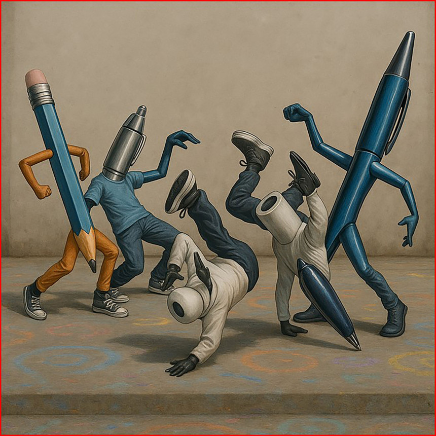 Apvienības “Pulse Effect” līderis Dzintars Vīksna (mūzikas un teksta autors) dziesmu “Tavā ritma rakstā” sarakstīja kā slavinājuma odu… rakstāmlietām.