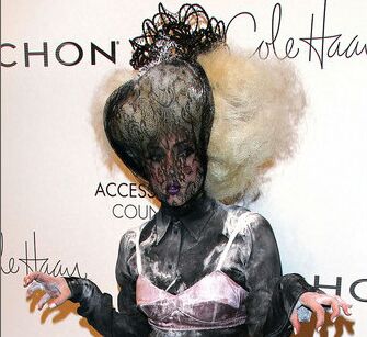 Dziedātāja Lady Gaga pasākumā ieradās, tērpta melnā plīvurā un virs drēbēm uzvilktā apakšveļā. Īsu brīdi pēc viņas iemūžināšanas Ņujorkas slavenību fotogrāfs saļimis uz trotuāra.
