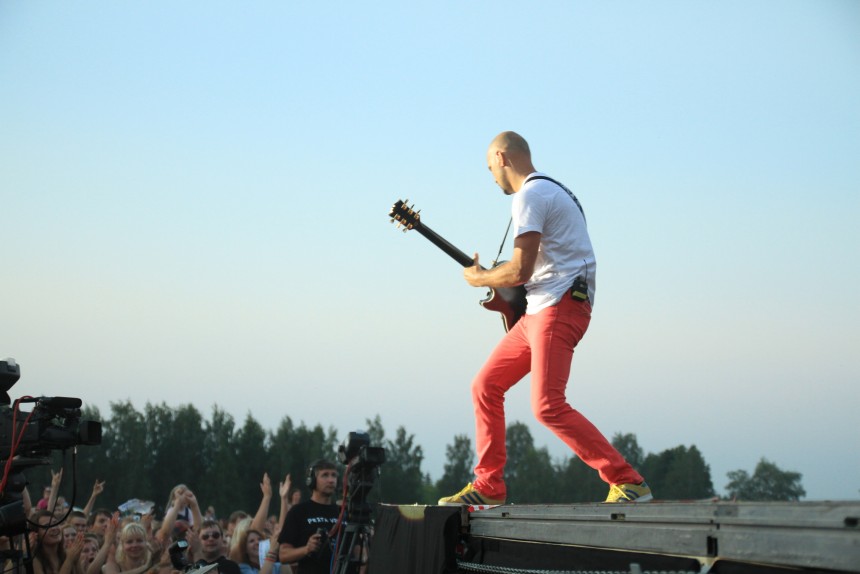 – Lampu drudzis. Pirmais [tūres] koncerts, daudz nezināmo. Protams, arī mēģinājumos spēlējam tādā plūdumā, kādā dziesmas skanēs koncertos, taču – mēģinājums ir mēģinājums, bet koncerts ir koncerts. Pirms tam jau biju uzbraucis augšā [skatuves] saulē, kad dziedāju spogulīti, bet vakarā, kad bija cilvēki, pie pils... To visu aprakstīt nav iespējams, es pat nezinu, kā lai tev to izstāsta! Kad dzirdi, kā cilvēki vienoti dzied [šīs dziesmas pavadījumā], saņem tādu enerģētisko lādiņu, ka tas ceļ gaisā. Tajā brīdī biju gaisā gan fiziski, gan garīgi – tas bija neaizmirstami! Protams, Jelgavā bija arī māju sajūta, pazīstami cilvēki.