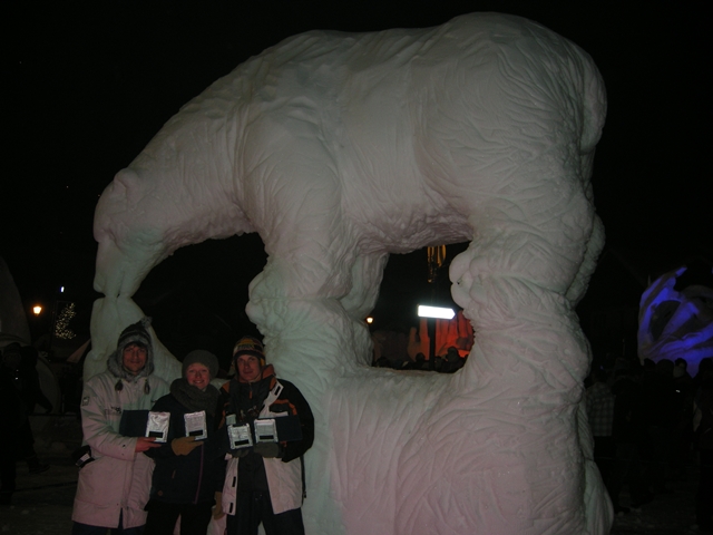 Tāpat vakar no Francijas ielidojuši pirmie Planētas „Ledus” iedzīvotāji – Latvijas māksliniece Inese Valtere – Ūlande un šeit dzīvojošais lietuvietis Donatas Mockus. Abu tēlnieku rokās Jelgavā milzīgie ledus bloki pārtop Koskenkorva ledus bārā. Lai Jelgavā paspētu izdarīt darbus laikā, abi mākslinieki ielidoja no Francijas, kur piedalījās Francijas Sniega skulptūru festivālā. Šajā festivālā, 30 komandu konkurencē, par skulptūru "Mirror" (Atspulgs) Inese, Donatas un komandas biedrs Aleksejs Geiko ieguva rekordlielu uzvaru skaitu – godpilno festivāla 2. vietu, 1. vietu mākslinieku vērtējumā, 1. vietu jauniešu vērtējumā, kā arī publikas simpātiju balvu - kļūstot par pirmo komandu Francijā, kura festivāla 30 gadu pastāvēšanas vēsturē, ieguvusi tik daudz godalgotas vietas.